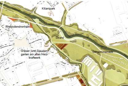 Im Anschluss daran wird bis 2017 die Gera umverlegt und eine Fluss-Schleife, ein Mäanderbogen, angelegt. Den Besuchern wird damit der Fluss wieder zugänglich gemacht und ein Erleben des Wassers ermöglicht, die Bebauung des Geländes und die Uferanlage verhinderten das bisher.