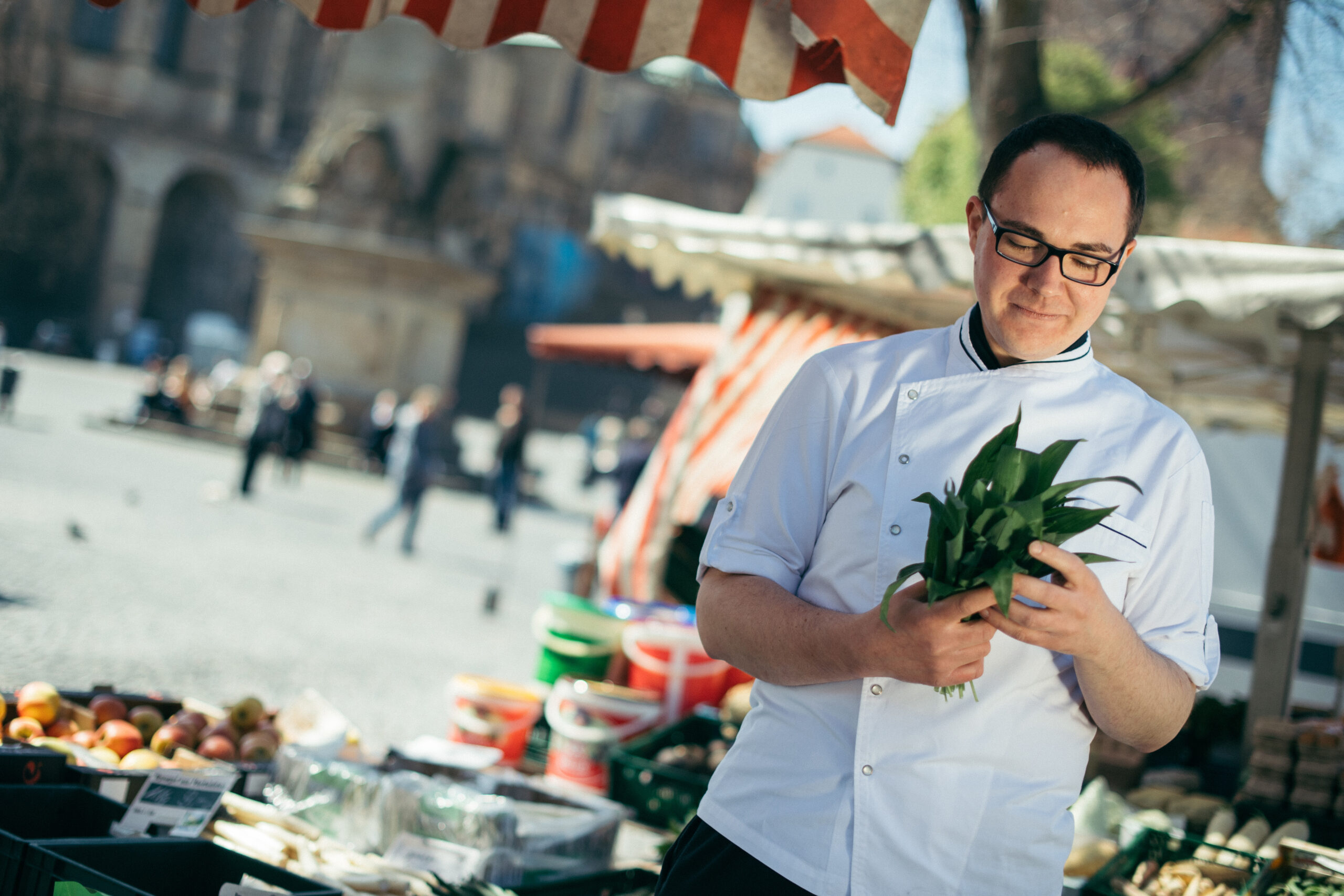 Eine neue Serie auf dem SWE-Blog entführt die Leser in eine der schönsten Ecken Erfurts – auf den Domplatz. Sternekoch Johannes Wallner (das ist der, der im Kaisersaal und Clara die Geschmacksknospen der Gäste verwöhnt) ist hier regelmäßig unterwegs, immer auf der Suche nach frischen Zutaten für sein Restaurant. Und Sie können via Blog dabei sein: Wallner verrät das eine oder andere Rezept, welches Gemüse gerade passt, was man daraus alles machen kann, worauf beim Kauf zu achten ist und von was man lieber die Finger lassen sollte…