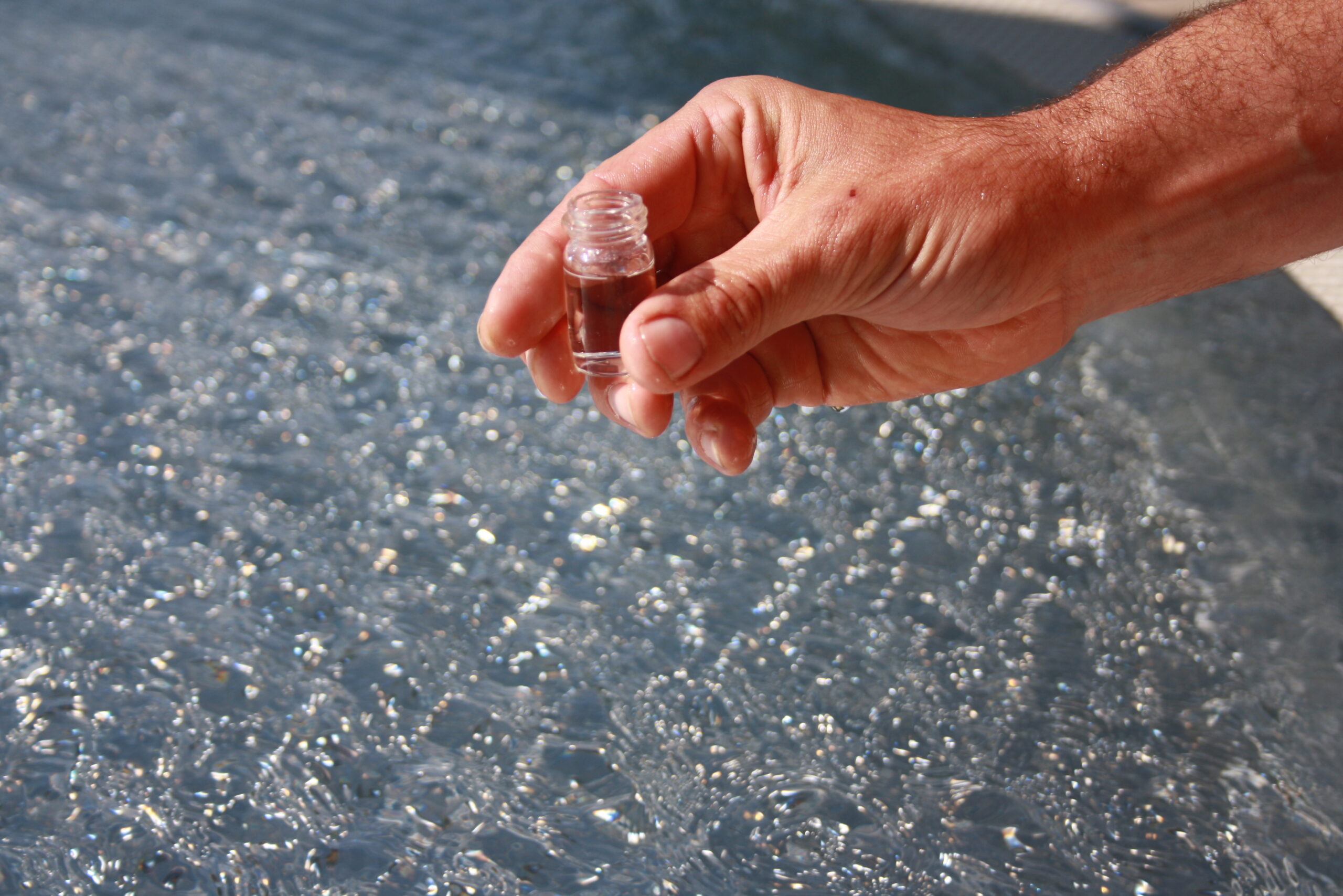 Jeden Morgen werden die Filter der technischen Anlagen gespült, die für gleichbleibende Wasserqualität im Kinderbecken sorgen. Das ist aus Edelstahl und muss jeden Tag vom Sand befreit werden, den die kleinen Baumeister von morgen mit ins Planschbecken tragen. Es folgt die obligatorische Wasserprobe.