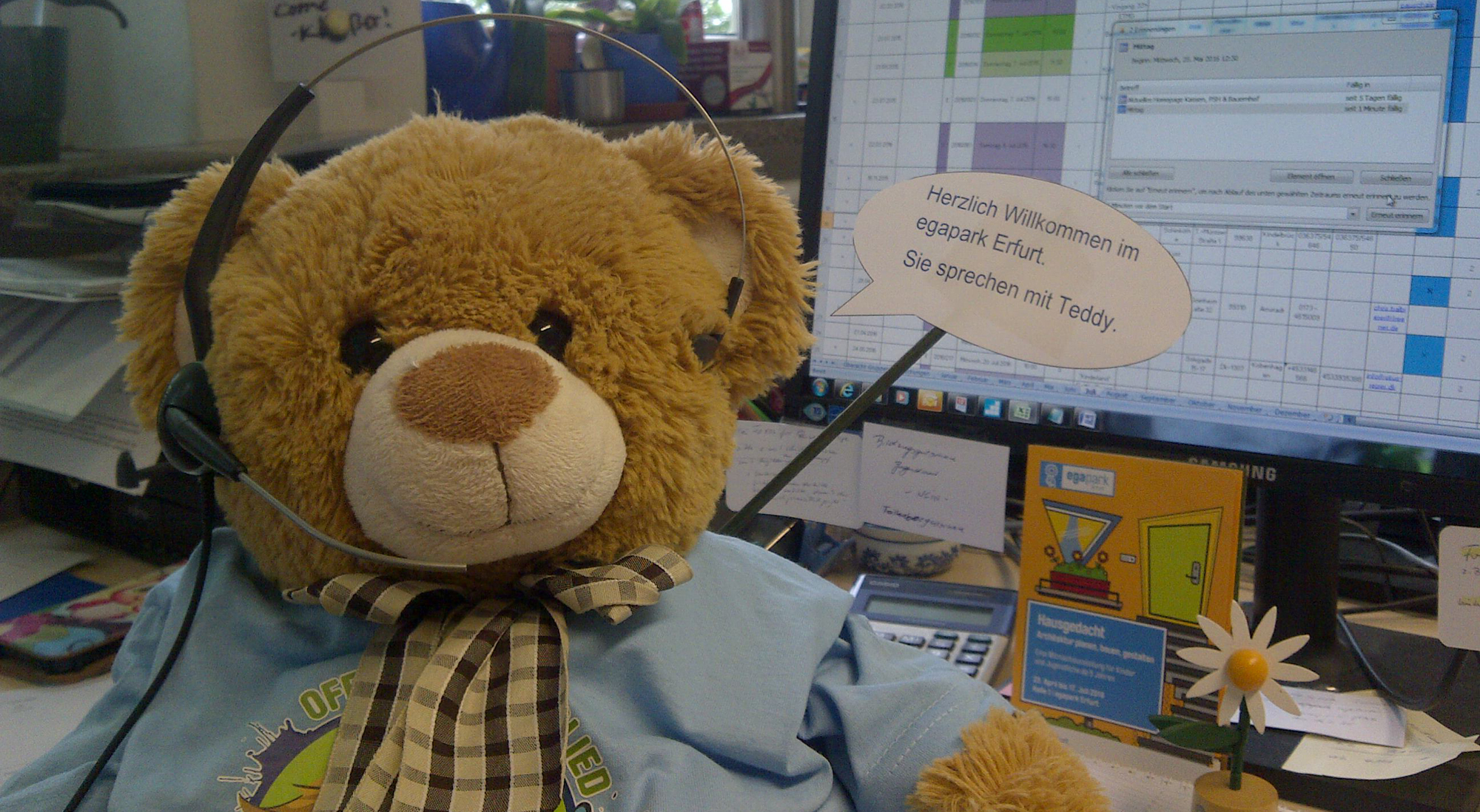 Nach mehr als 30 Anrufen hatte ich den Dreh langsam raus und begann meine Telefonate mit den freundlichen Worten: „Herzlich Willkommen im egapark Erfurt. Sie sprechen mit Teddy.“