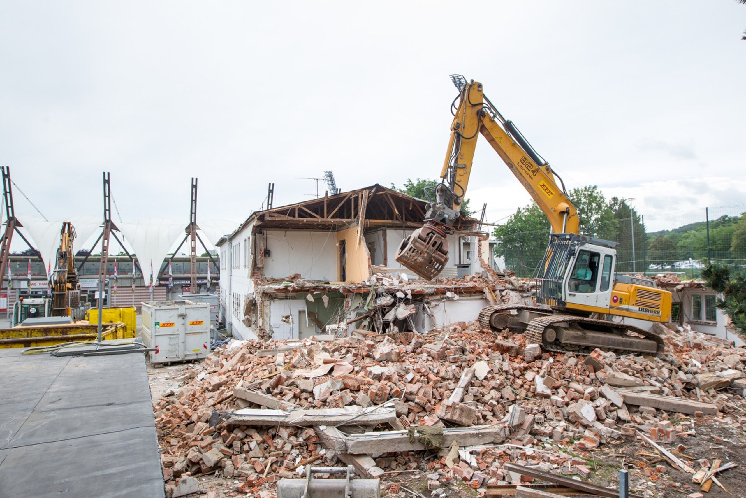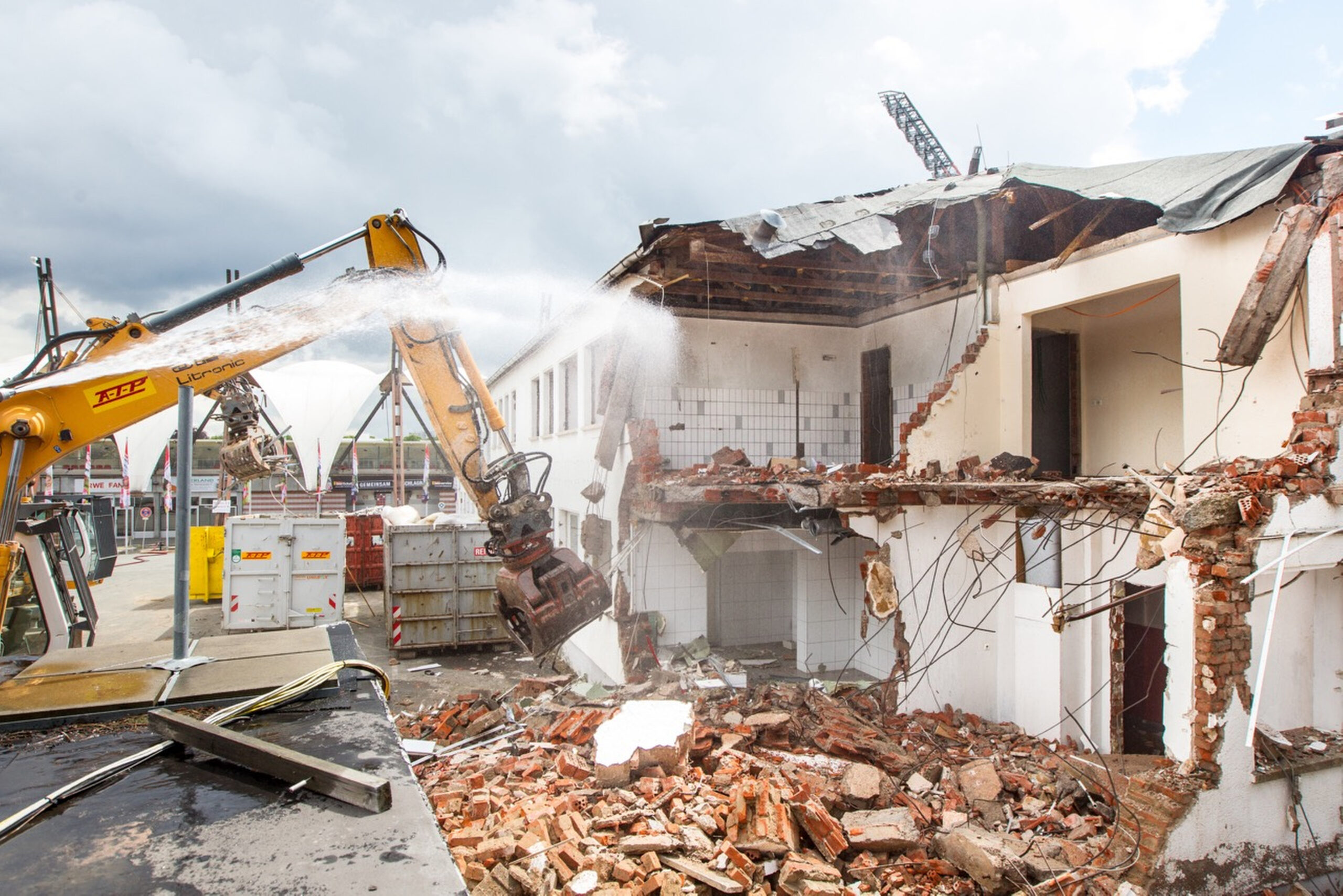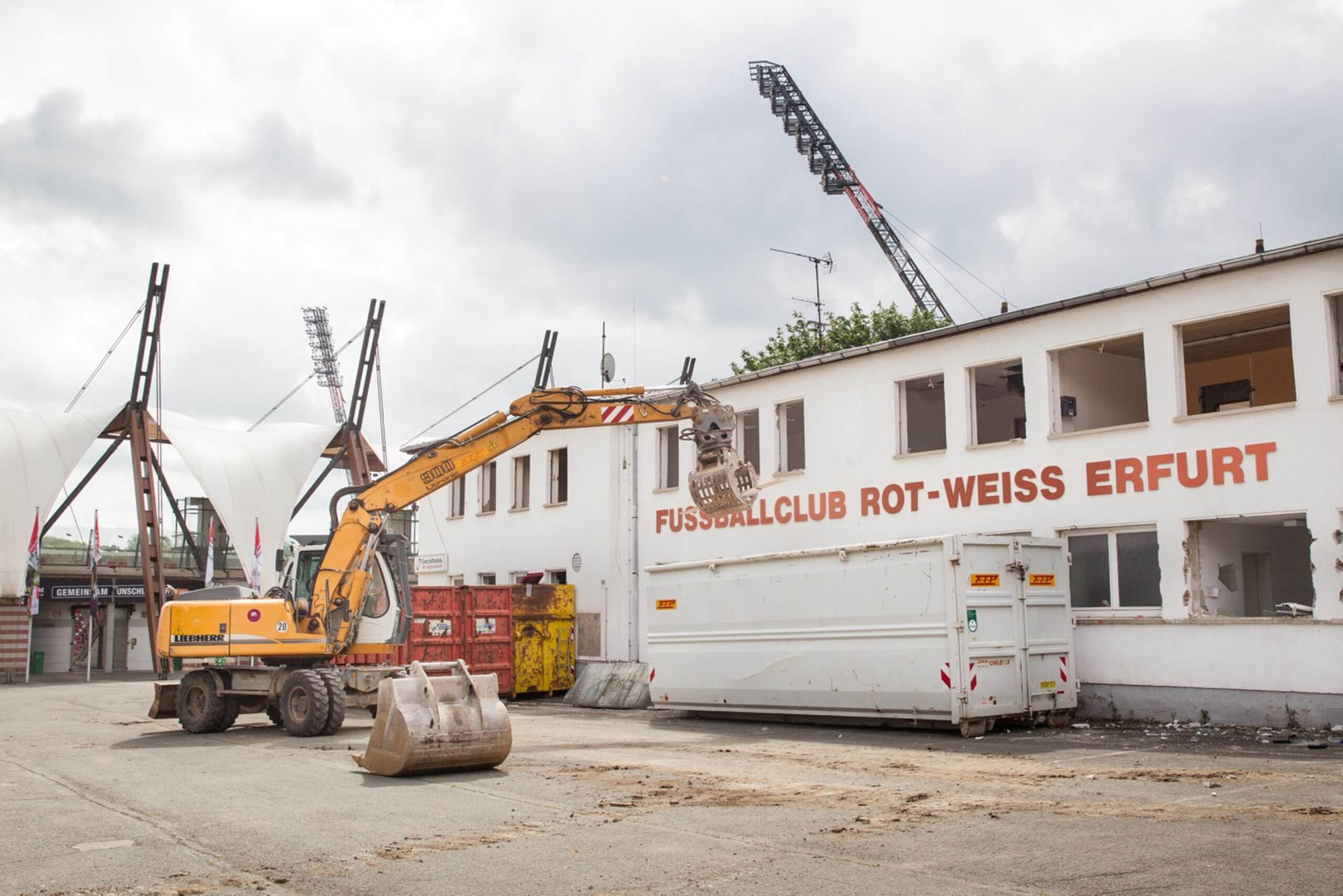 Ein Bagger ist seit zwei Tagen dabei, das Steinhaus abzutragen. Nur noch wenige Stunden und das Gebäude wird Geschichte sein. Die Agentur Bild13 war für die Arena Erfurt vor Ort und hat die letzten Augenblicke festgehalten.