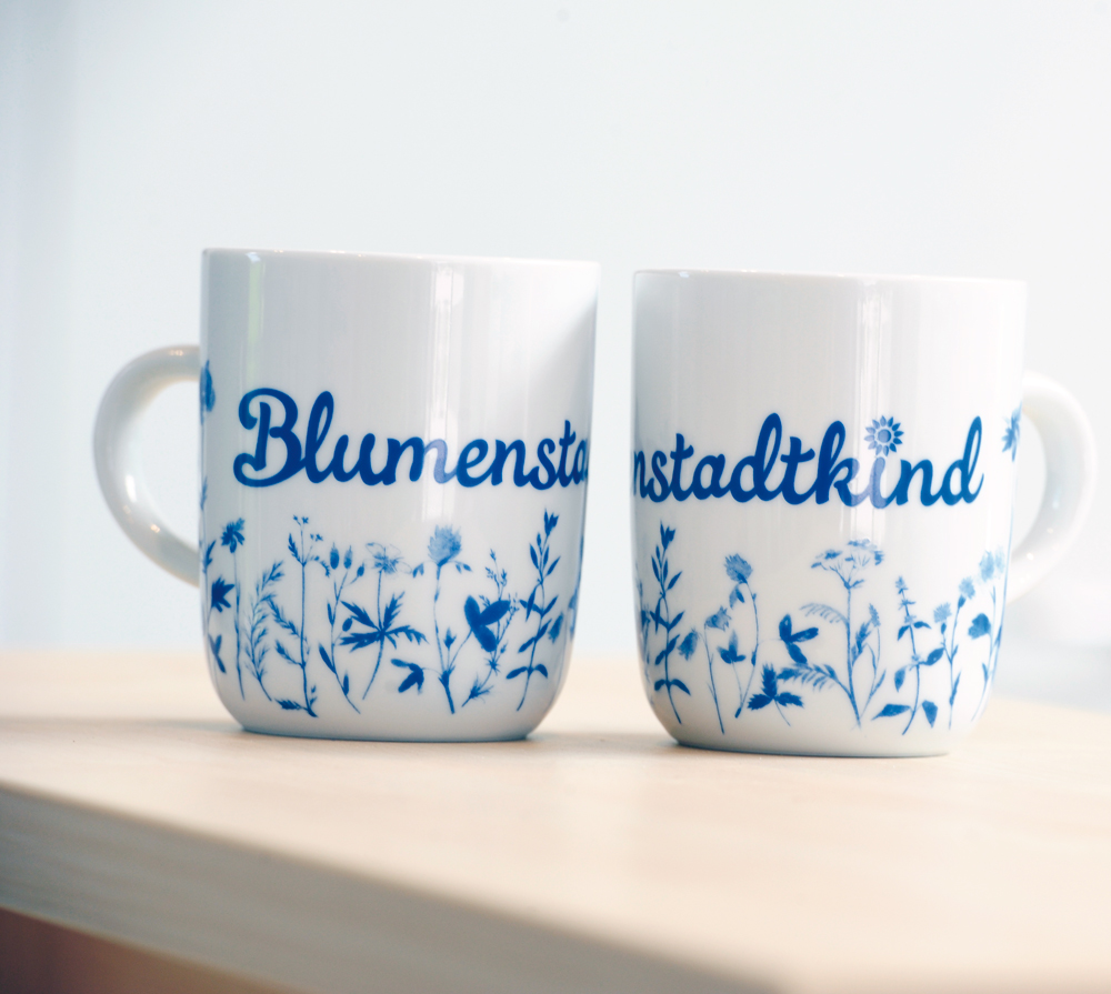 Diese Philosophie spiegelt auch das Sortiment der Marke „Blumenstadtkind“ wider. Neben den 36 Postkartenmotiven gibt es Kaffetassen, die man gern zum Frühstück auf den Tisch stellt. Das Motiv „Blumenstadtkind“ punktet mit frischem Blau-Weiß und filigranem Pflanzenmuster. Der Lustgärtner oder die weibliche Form, Lustgärtnerin, entlocken selbst dem Morgenmuffel ein Lächeln. Die Tasse für die kleinen Blumenstadtkinder hat Motive des neuen egapark-Spielplatzes aufgedruckt. Und wenn das Frühstück der Großen zu lange dauert, kann die Tasse gegen die Langeweile ausgemalt werden. Das funktioniert ganz einfach mit handelsüblichen Buntstiften. Hardy Karius probiert es gleich selbst aus, als Verkaufsargument….