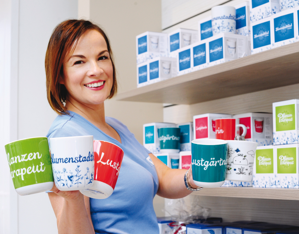 Das Shopkonzept umfasst noch weitaus mehr. In den Regalen sollen keine Artikel verstauben, die man in vielen Freizeiteinrichtungen kaufen kann, Dutzendware, die ihren Ursprung meist in Asien hat. Hardy Karius setzt auf regionale Partnerschaft. Hochwertige Schokolade, fruchtige Brotaufstriche, würziger Bornsenf und handgemachte Seifen werben mit Qualität und kommen aus Erfurt. „Das Geld bleibt damit in der Region und wir können mit den Partnern direkt unsere Ideen besprechen“, sieht Hardy Karius als Vorteile. Das Sortiment im Shop ist echtes Teamwork, auch das Gartenparkteam hat eigene Angebote entwickelt: Tassengärten, von egapark-Floristmeisterin Conni Squara bepflanzt, und großformatige Fotos vom egapark-Gärtner und Hobbyfotografen Peter Grimm verkörpern 100 % egapark.