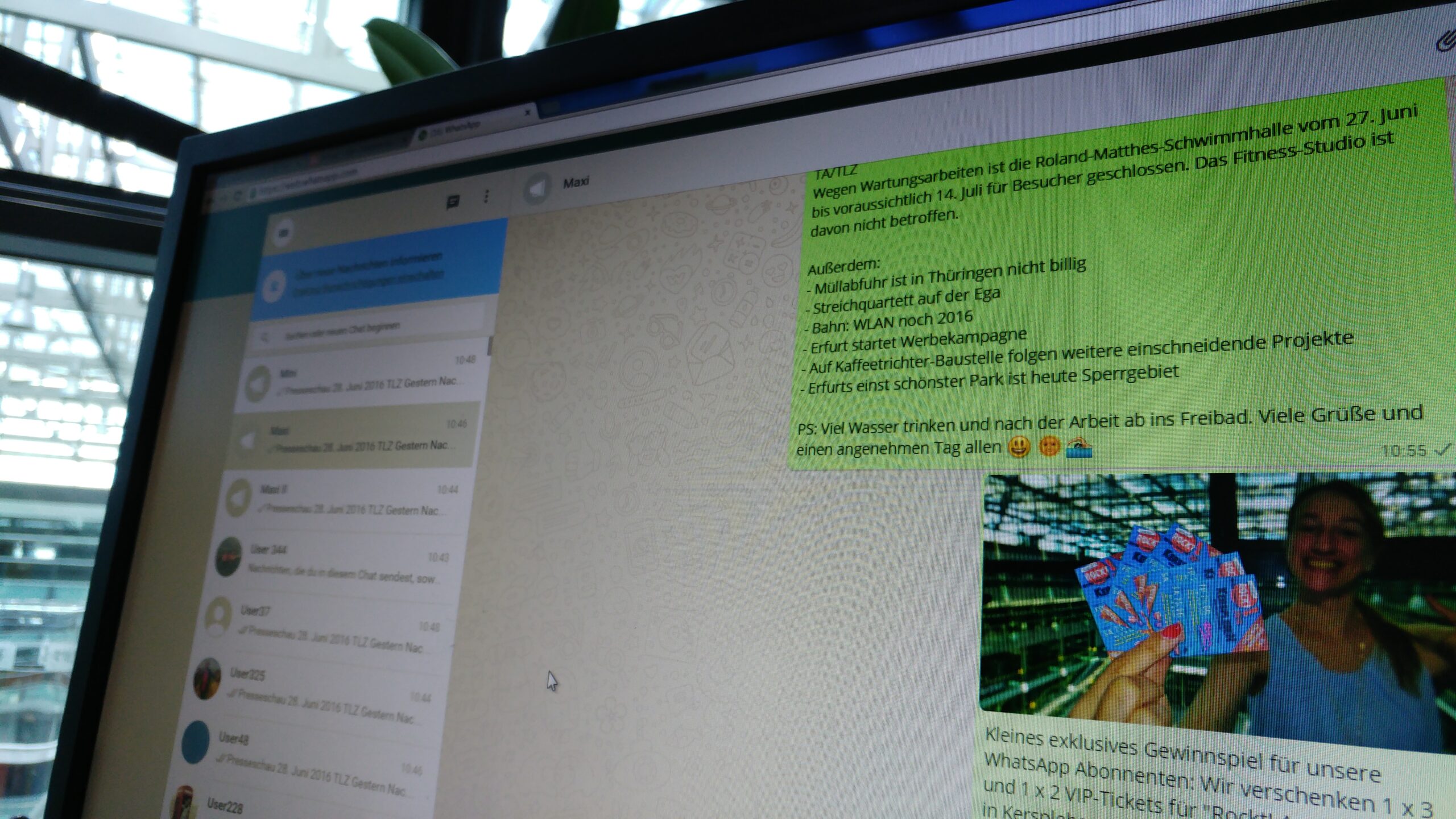 Die technische Umsetzung war einfach: Wir nutzen die Broadcast-Funktion von WhatsApp. Die ermöglicht die Erstellung von Listen mit bis zu 256 Kontakten. Damit die Stadtwerker in diese Gruppe aufgenommen werden, müssen sie zunächst selbst aktiv werden – durch Abspeichern unserer Telefonnummer und das Versenden einer Nachricht an uns. Sobald wir sie in die Broadcast-Liste aufgenommen haben, geht es los.