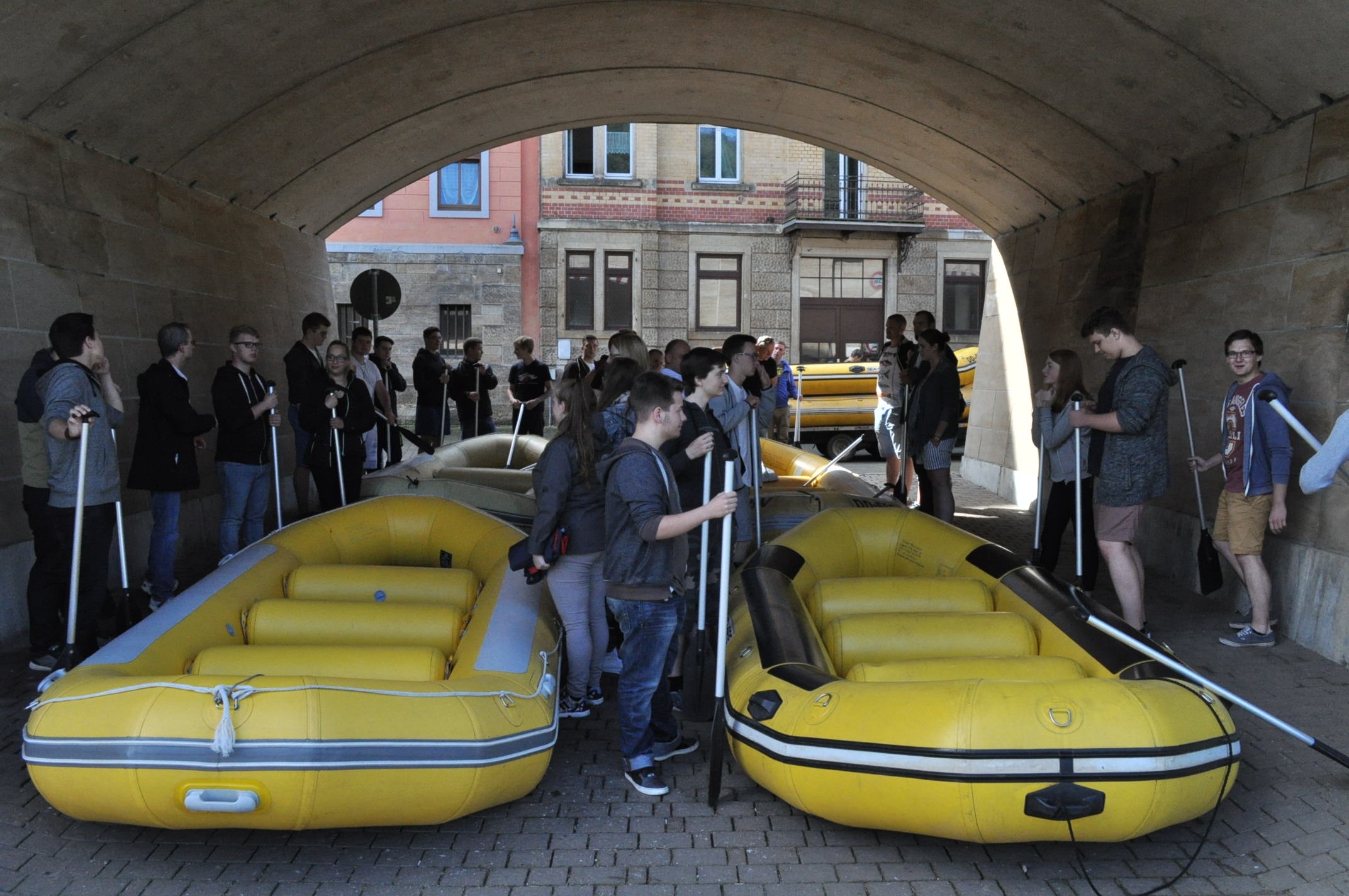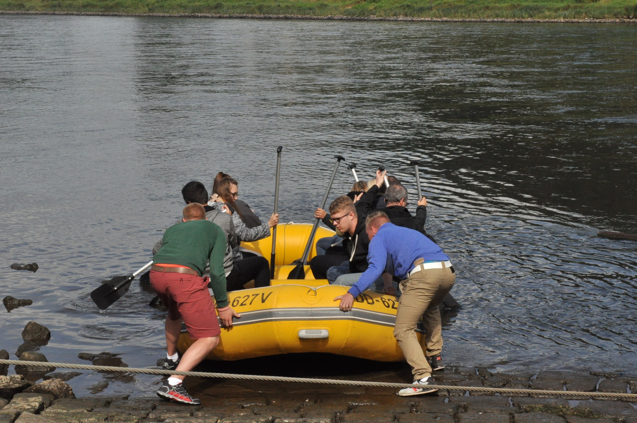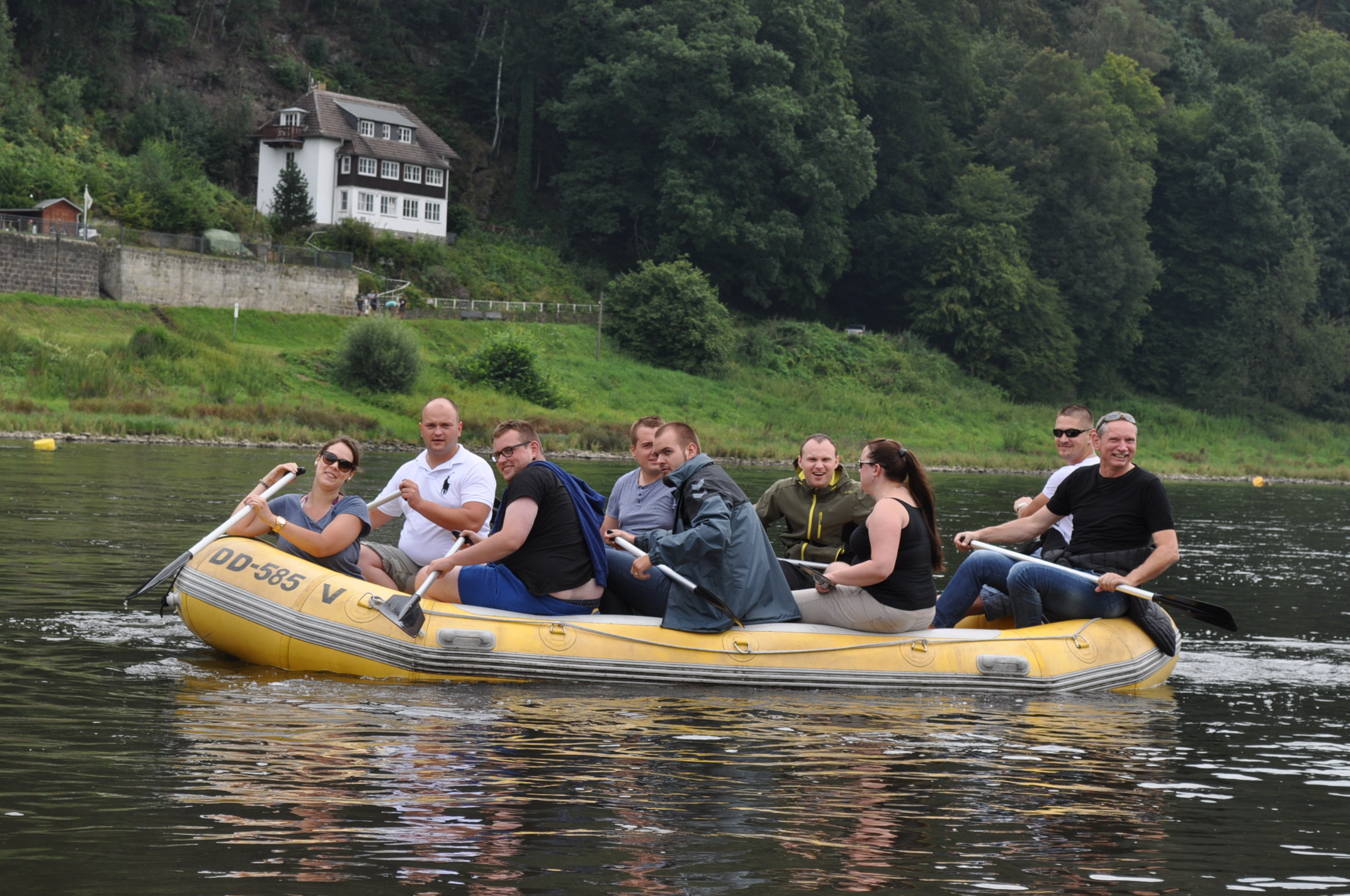 Der nächste Morgen ging leider nicht so schön los. Der Himmel war grau und es hat geregnet. Das konnten wir für unser Highlight – die Schlauchboottour über die Elbe – nicht gebrauchen. Doch der Regen hörte schnell wieder auf und kaum saßen wir zu zehnt auf unseren Booten, schon kam die Sonne raus. Beim gemütlichen Paddeln hatten wir eine traumhafte Aussicht und unheimlich viel Spaß. Die zwei Stunden vergingen wie im Flug.
