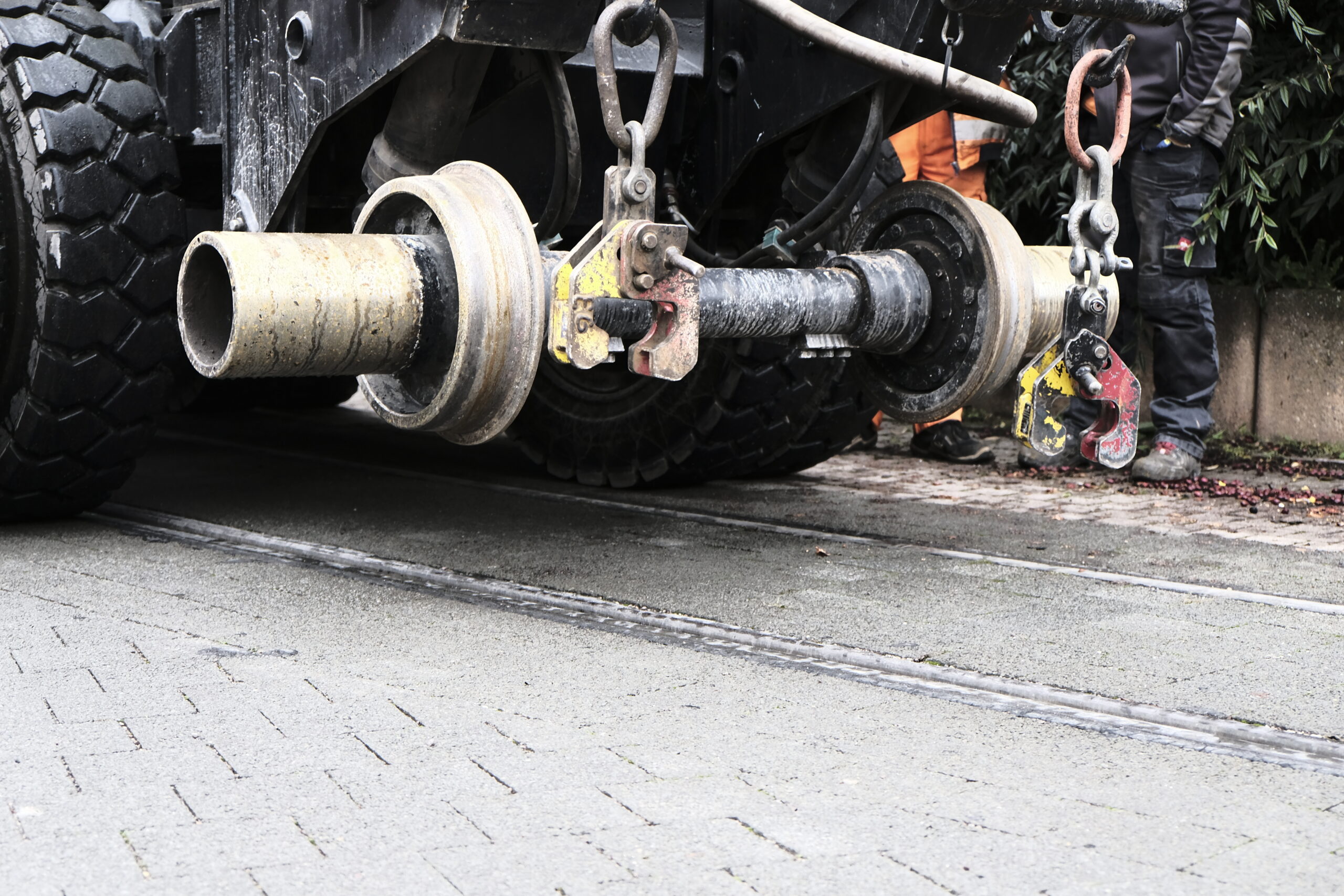 6 Grad Celsius, Nieselregen – absolutes Sauwetter. Keinen Hund würde man jetzt vor die Tür jagen. Die Gleisbauer in der Magdeburger Allee arbeiten trotzdem. Grund sind die Weichenanlagen. Die sind schon weit über 25 Jahre alt und müssen dringend ausgetauscht werden.