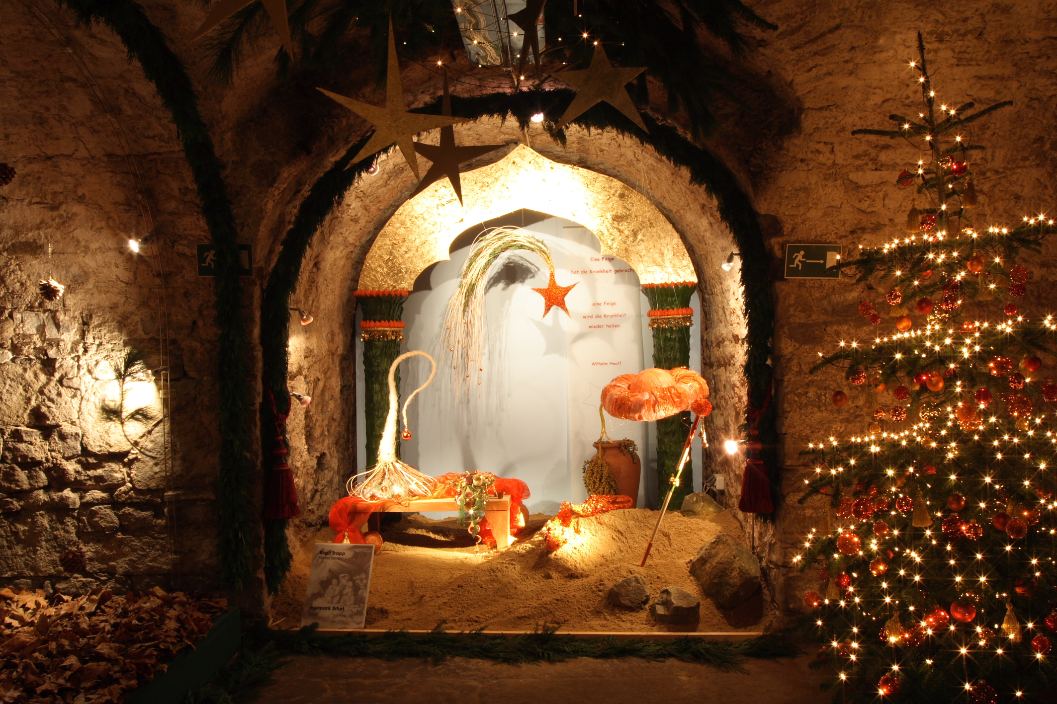 Von Jahr zu Jahr wurde die Schau ein bisschen schöner. Das alles sieht man dem Felsenkeller nicht mehr an. Er ist wie geschaffen für die weihnachtliche Schau. Kaum vorstellbar, dass die mittelalterlichen Gänge ursprünglich nur Ausweichort für die Gewölbe der Cyriaksburg waren.