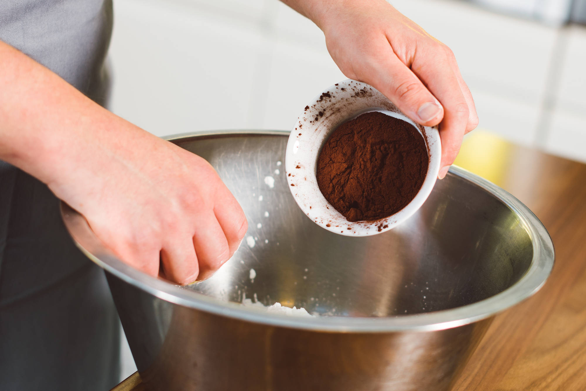 Aus dem Ofen nehmen, auf ein Kuchengitter setzen und auskühlen lassen. Als Dekoration mit Puderzucker bestäuben.