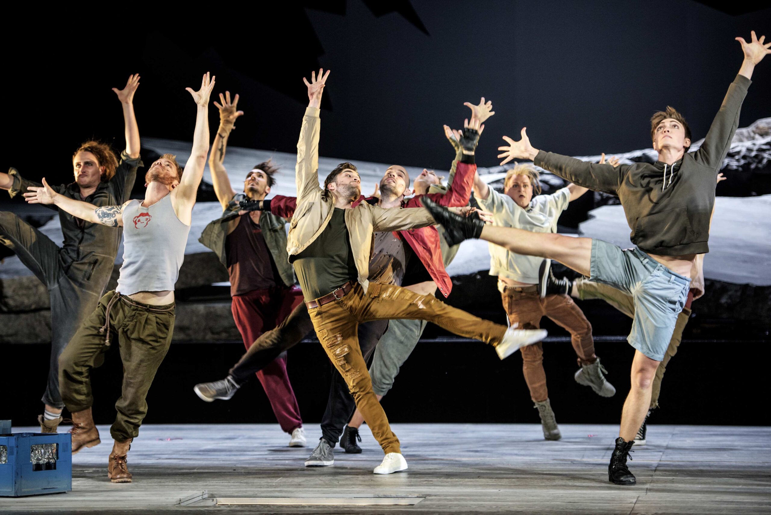 Stattdessen hat der Kostümbildner eine kosmische Reise in Szene gesetzt, die auf einer zerstörten Straße im Nirgendwo endet. Das Musical spielt auf einer zerklüfteten Bühne, im Hintergrund zersplitterte Schollen, die an Caspar David Friedrichs Gemälde „Das Eismeer“ erinnern, als stünden sie für die Kälte in der Gesellschaft.