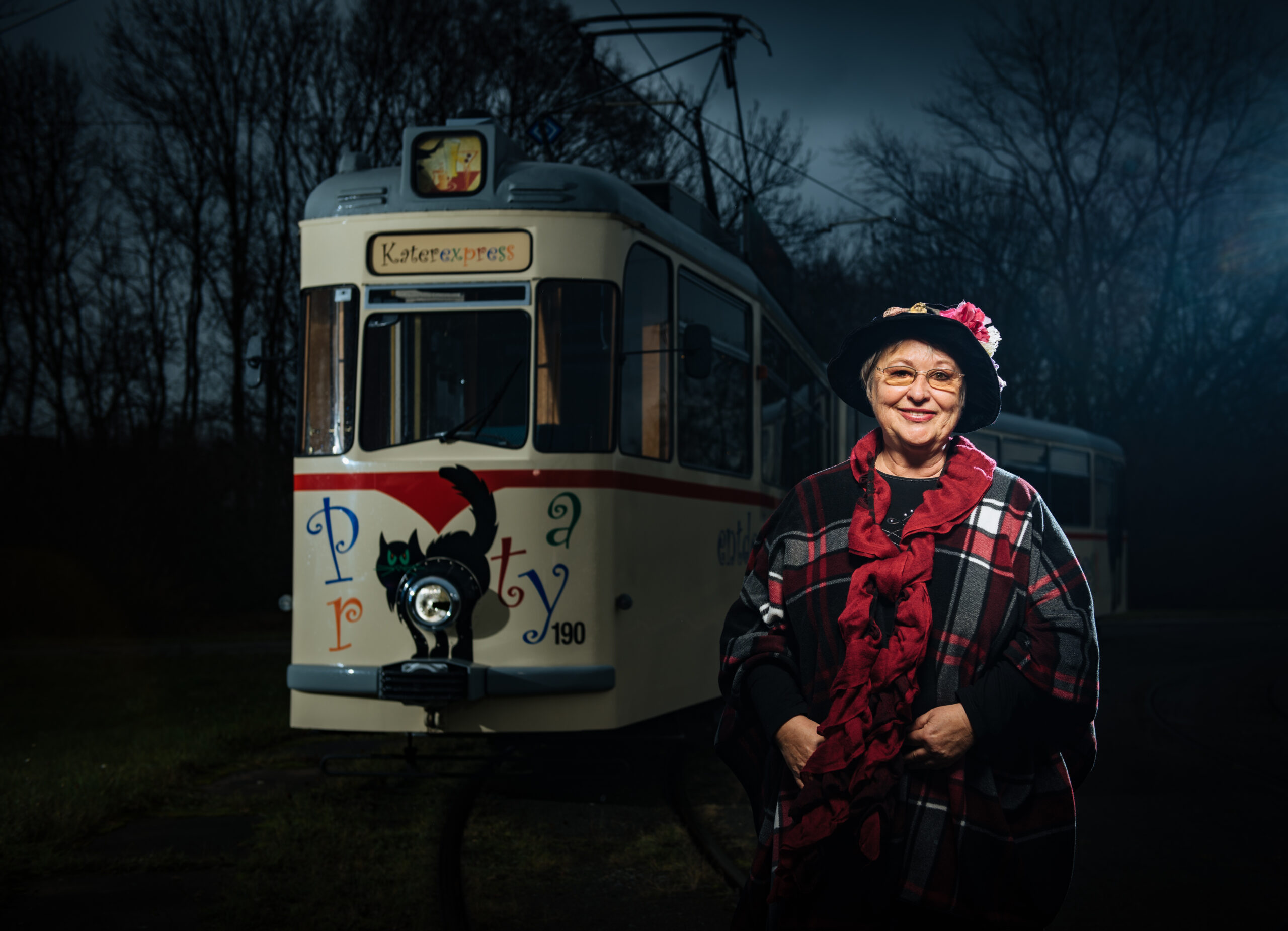 Wenn die sympathische Dame mit Hut, Cape und nettem Lächeln in den Katerexpress einsteigt, rechnet man vielleicht mit einer gemütlichen Fahrt durch Erfurt, nicht aber mit den Abgründigkeiten, die Hildegard Kretzschmar zu bieten hat. Die holt sie sich zum einen aus der täglichen, sehr intensiven Zeitungslektüre, „einem der wichtigsten Arbeitsmittel eines Stadtführers“, wie sie sagt. Aber auch die Krimis rund um Thüringer Kriminalfälle hat die Stadtführerin aus Leidenschaft regelrecht verschlungen. Gewürzt werden die dunklen Details aus Erfurts Vergangenheit mit Erinnerungen eines pensionierten Polizeibeamten, der praktischerweise ihr Ehemann ist. Das finden die Fahrgäste immer unerhört spannend.