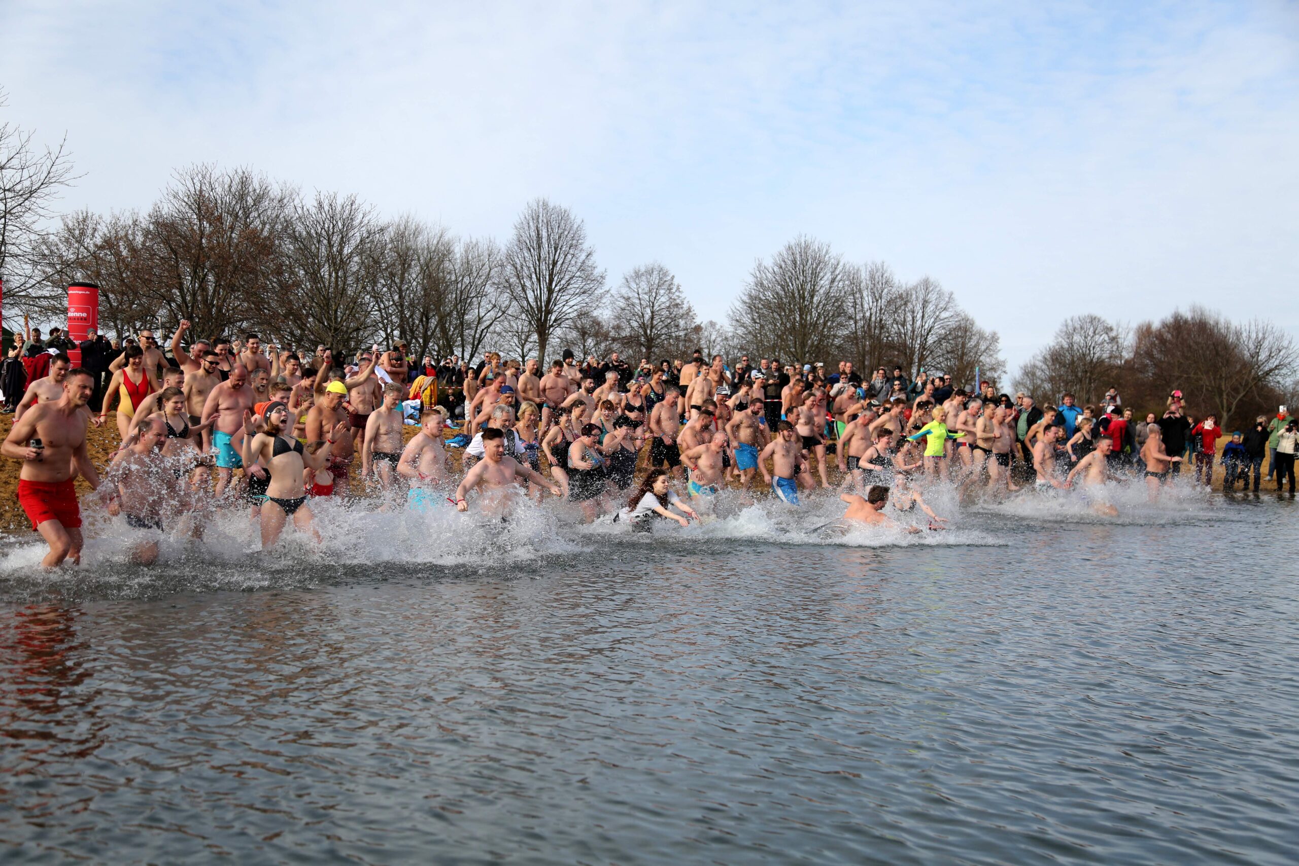 11.03.17 , Erfurt Stotternheim, Strandbad, Antenne Thüringen veranstaltet das alljährliche Anbaden – 101 Leute haben sich entschieden, bei 6 Grad Wassertemperatur ins Wasser zu gehen