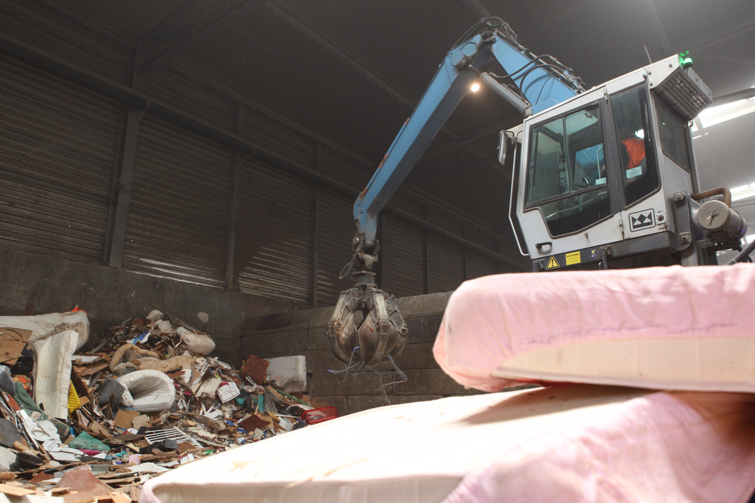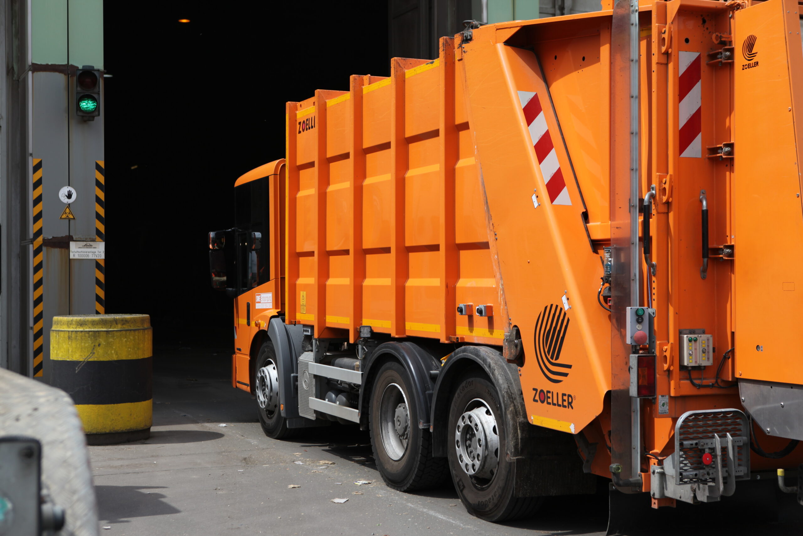 Die orangen Fahrzeuge der Entsorgung werden hier geleert. Fast gespenstisch: Sie entladen sich selbst. Der Müll einer Tagestour breitet sich einfach hinter dem aufgeklappten Wagen aus. „Zehn bis Zwölf Tonnen sind es bei voller Ladung, außerdem bekommen wir Hausmüll aus der Stadt Weimar und dem Weimarer Land“, erklärt Andreas Panke. Berge von Abfall liegen lose in der Halle. Dann kommt Technik ins Spiel: Der massive Radlader bringt den Müll in den Zerkleinerer – oder macht Halt vor Fremdstoffen. „Es ist sehr wichtig, dass hier eine Kontrolle erfolgt“, sagt Panke. Ob man seinen verlorenen Ehering oder Schlüssel noch in letzter Minute finden könnte? „Es ist wahrscheinlich schon zu spät“, lacht er, „denn eine halbe Stunde nach der Tour kommt der Müll in den Zerkleinerer. Und in der großen Schaufel fällt ein einzelner Ring nicht auf.“ Kuriose Fundstücke gibt es allerdings trotzdem: „Kleine Kühlschränke wurden schon in den Hausmüll geworfen, genauso wie Autoreifen. Die müssen natürlich vorher raus!“, ärgert sich der Leiter der Anlage.
