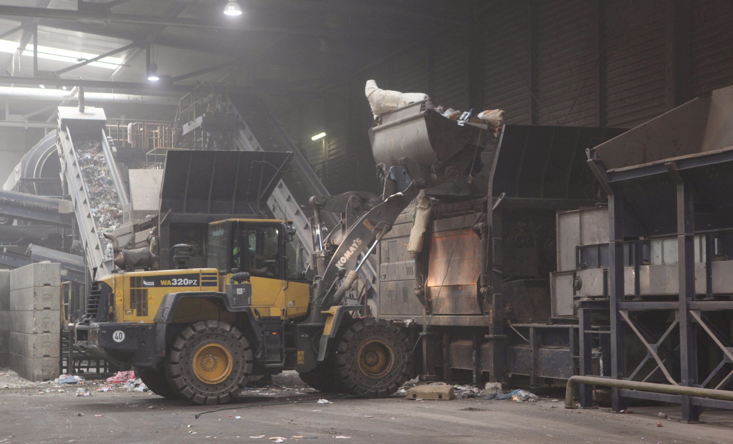 Von wegen…! An der Schwerborner Straße steht die RABA Erfurt-Ost, mit dem weithin sichtbaren blassorangen Müllbunker. „RABA“, kurz für Restabfallbehandlungsanlage. Dieses rund 40 Meter hohe Gebäude ist allerdings nur ein Teil des Komplexes. Darin findet die ‚Energetische Verwertung‘ statt, also die eigentliche Verbrennung. Fast ein Drittel des Abfalls kommt allerdings gar nicht so weit: Die Mechanisch-biologische Behandlung schleust rund 30.000 der insgesamt 90.000 Tonnen vorher aus. Wie das geht? Auf jeden Fall geruchsintensiv – und so sind die Einfahrten in das Gebäude mit luftdichten Toren versiegelt. Atemschutz sollte man hier bei längerem Aufenthalt tragen. Oder in einer druckbelüfteten Kabine arbeiten, wie die Fahrer der Radlader und Umschlagbagger.