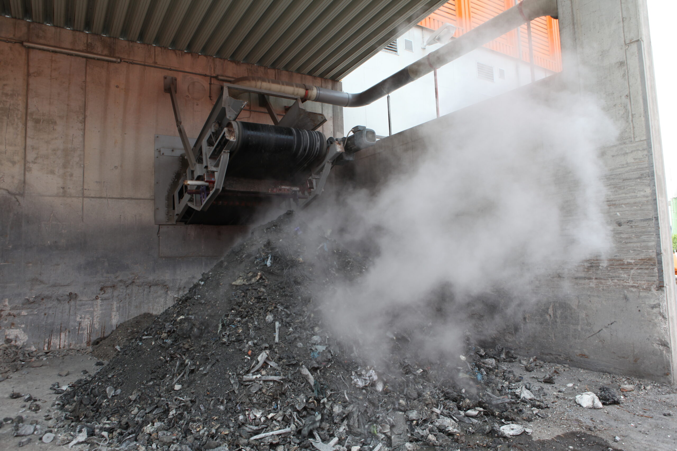 Bleiben noch über 60.000 Tonnen vorbehandelter Abfall pro Jahr – der sich an 9 Stunden täglich durch einen langen, geschlossenen Gang bewegt. Aus der luftdichten Halle der Mechanischen Aufbereitung geht es nämlich auf dem kurzen Weg in die Verbrennung. „Diese kombinierte Anlage ist in Deutschland fast einzigartig. Durch die direkte Nachbarschaft können wir hier viele Vorteile nutzen.“, freut sich Andreas Panke. So befeuert die Rotteabluft die Flammen der Verbrennung, die mit 1100 Grad dem Abfall zu Leibe rückt. Eine aufwändige Filterung der Luft fällt so weg, ebenso reduziert sich der Einsatz von Erdgas zur Befeuerung. So werden aus Haus- und Sperrmüll Strom und vor allem Wärme. Mit 10 bar braucht diese wiederum nur über den Zaun zu wandern, um in der Gas- und Dampfturbinenanlage in der Stotternheimer Straße ins Fernwärmenetz gespeist zu werden. Auf Seiten der Restabfallbehandlungsanlage bleiben von den 90.000 Tonnen Müll pro Jahr, den die 350.000 Einwohner im Einzugsbereich produzieren, so rund 14.900 Tonnen Schlacke übrig. Gekühlt und gefiltert tritt diese ihre nur rund drei Kilometer lange Reise zur Deponie an – ein weiterer Standortvorteil.