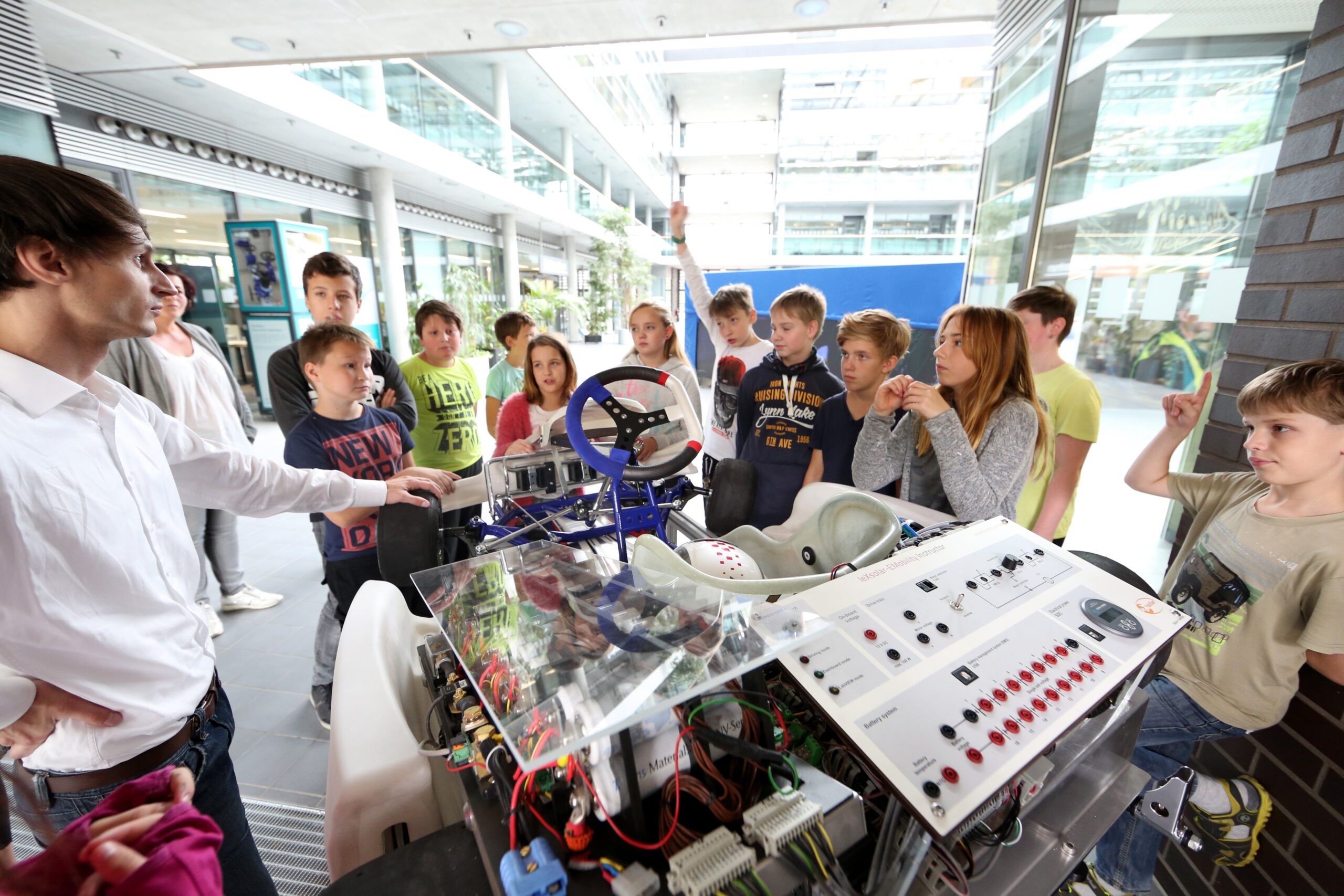 Sechs Schulklassen sind in dieser Woche zu den Projekttagen der Elektromobilität bei den Stadtwerken Erfurt.
