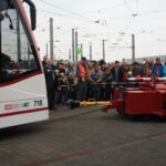 Eins der Highlights war ohne Frage die Eingleisübung an einer Straßenbahn. Viele Besucher wollten unbedingt dabei sein. Warum Bahnen manchmal eingegleist werden müssen? Das wird notwendig, wenn es besonders schwere Unfälle gibt, beispielsweise mit einem Auto.