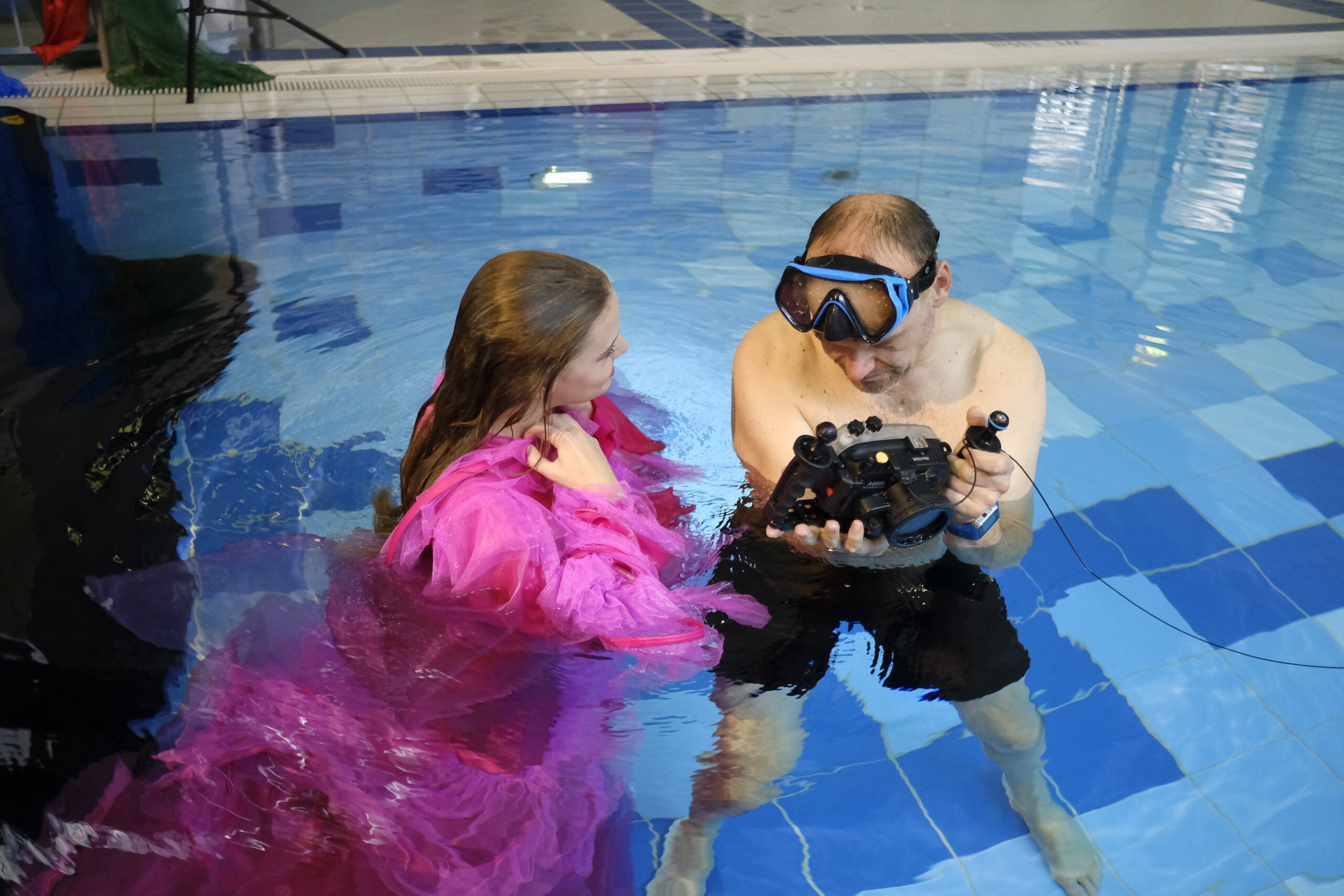 Obwohl erst 16, hat Lea schon einige Erfahrungen als Model sammeln können. Ein Unterwassershooting war aber noch nicht dabei. Das macht sie aufgeregter als bei „trockenen“ Shootings. Kann ich mich ordentlich Bewegen? Wie ist das mit den offenen Augen? Egal, also Augen auf und durch. Stephan, nun in Taucherbrille und Badehose, ist begeistert. Sie entpuppt sich als Naturtalent. Abtauchen, im Becken blitz es. Auftauchen, Luft holen, ein paar Anweisungen vom Fotografen, wieder ins Wasser tauchen. Dazwischen Bildercheck. Das geht eineinhalb Stunden – gefühlte 15 Minuten.