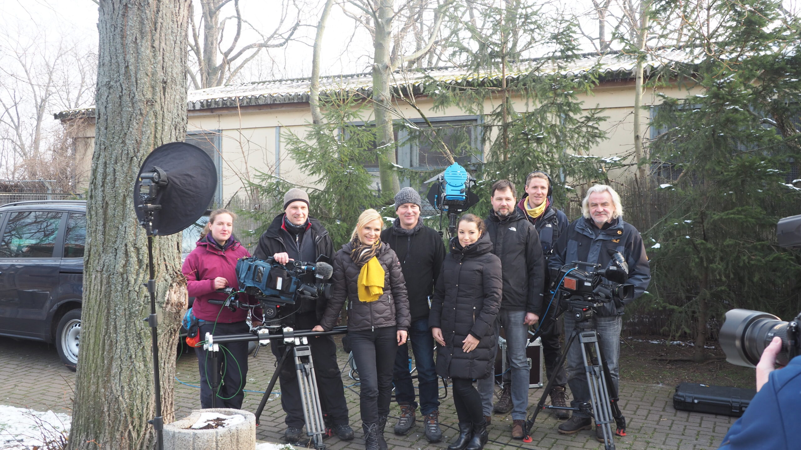 Auch der Fotograf Steve Bauerschmidt geriet beim Verlassen des Geheges in Wule Wules Visier. Doch auch hier griff Saskia wieder zügig ein, sodass auch Steve das Gehege wieder unversehrt verlassen konnte. Das Lachen konnte sich jetzt keiner mehr verkneifen und wir bewunderten die so ungewöhnliche Beziehung zwischen Mensch und Tier. „Das sind eben Tiere, die haben ihren eigenen Kopf“, sagte der Regisseur Axel Müller-Hönow mit einem Schmunzeln. Er ist genau wie Uta Bresan schon seit der ersten Sendung mit dabei und seitdem aktiv in die Gestaltung der Sendung mit eingebunden.