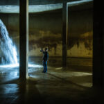 Wir steigen in eine Kammer des Hochbehälters, die für Wartung und Reinigung entleert wurde. Treppen führen ca. 12 m tief hinab. Hohe Säulen tragen das Bogengewölbe, Optik und Akustik erinnern an eine Kirche. 5000 m³ Wasser werden in ein paar Tagen nach erfolgter Reinigung der Speicherkammer wieder eingefüllt. Wir werfen einen Blick in die zweite, gefüllte Behälterkammer. Das 8 ° Celsius kühle Wasser steht bis ca. drei Meter unter dem Eingang und schillert türkis und klar, fast wie das Meer.