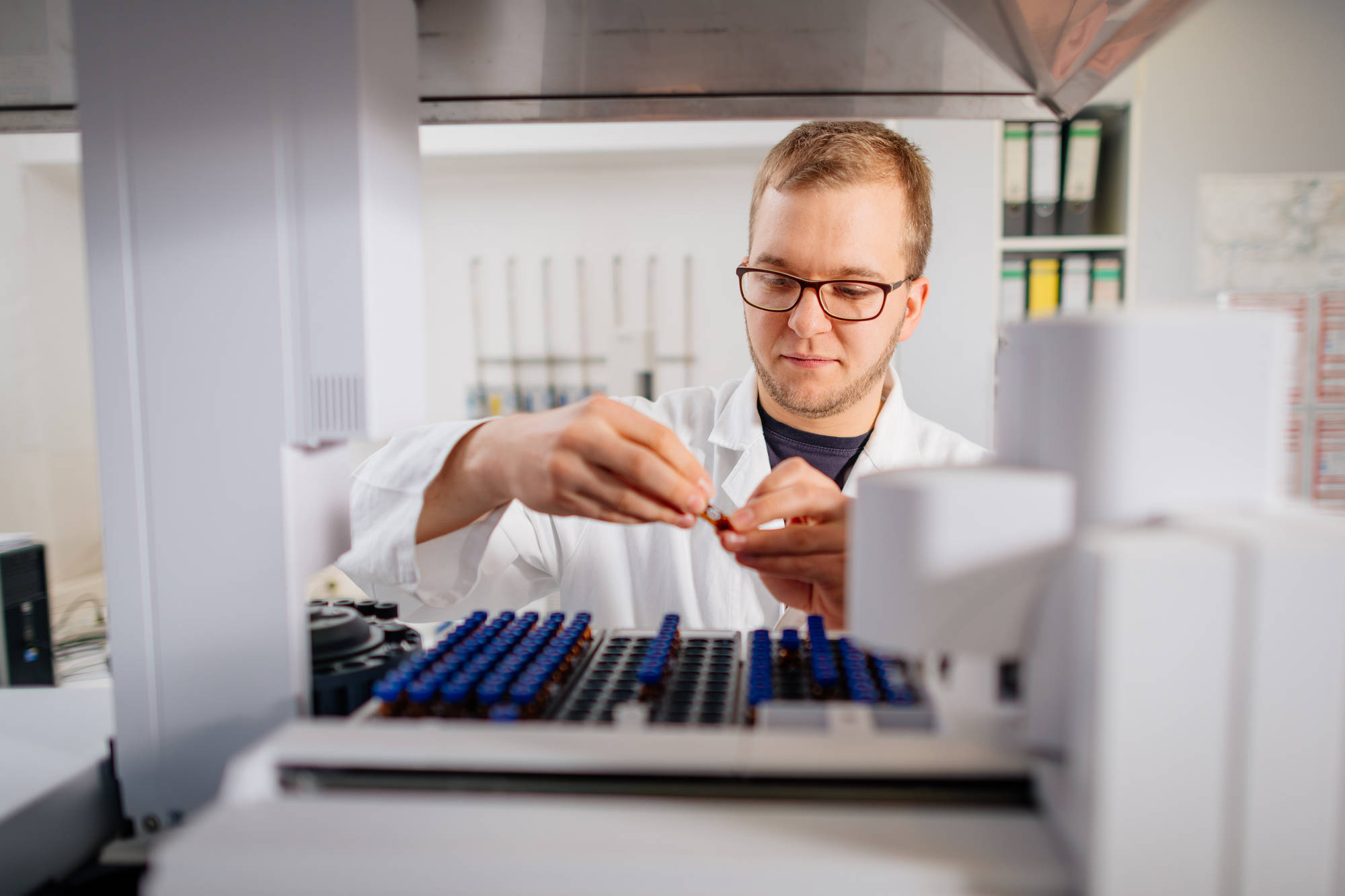 In den Laborräumen gibt es eine Vielzahl von Geräten, mit denen kleinste Spuren bestimmter Stoffe nachgewiesen werden können. Vieles läuft per Computer automatisch, Messreihen werden aufgezeichnet und anschließend ausgewertet und archiviert. Was passiert mit den Trinkwasserproben? pH-Wert, Leitfähigkeit, Trübung oder Schwermetall und Quecksilber werden untersucht. Außerdem kann auf Spurenstoffe wie Arzneimittelrückstände oder Pflanzenbehandlungsmittel getestet werden. Die Vorgaben der Trinkwasserverordnung sind streng – im Sinne der Verbraucher. Dr. Alexander Perko analysiert das Wasser auf Desinfektionsnebenprodukte und erklärt uns, wie das mit der modernen Labortechnik funktioniert.