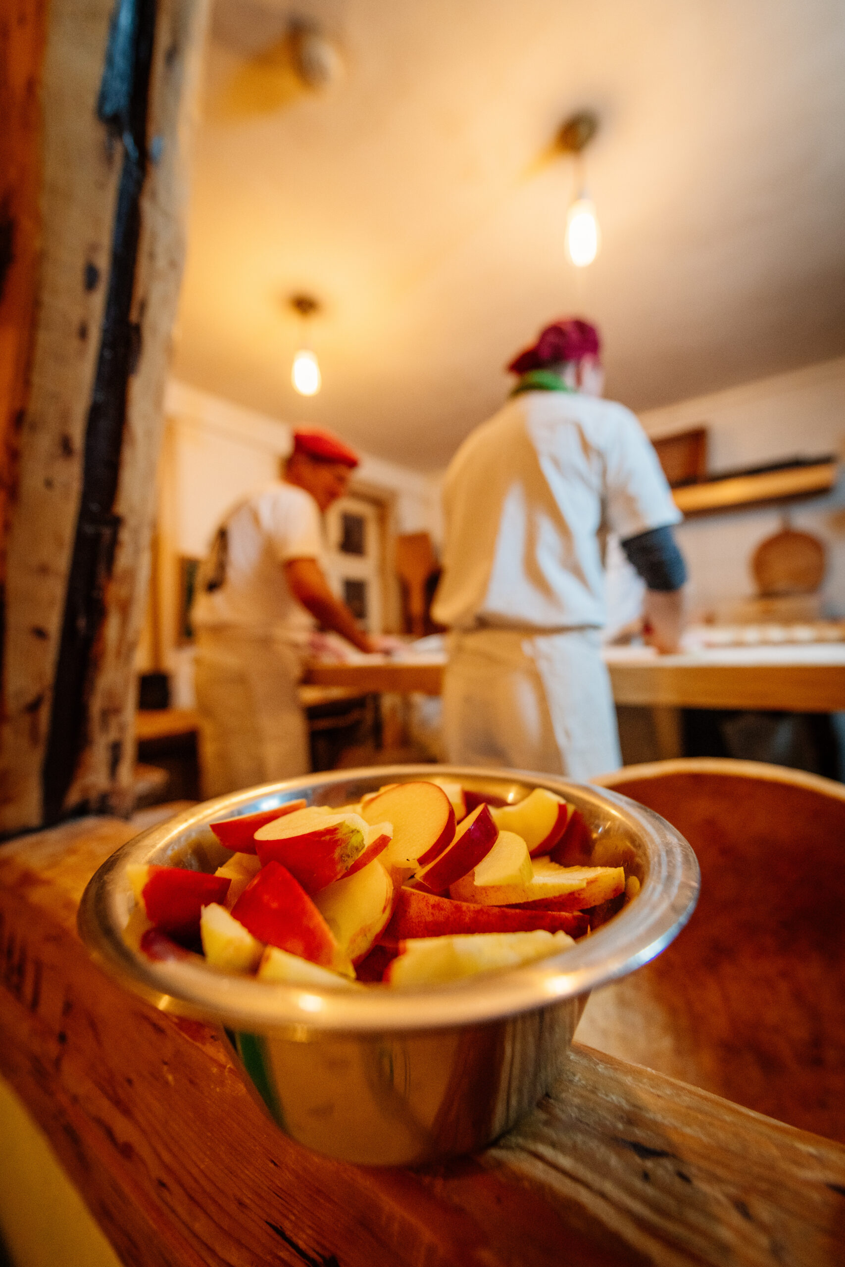 Für alles andere bleibt keine Zeit. Dafür kommt die Welt jetzt zu ihm. Phoebe zum Beispiel. Sie geht noch in die Grundschule und steht schon in der Tür, bevor die ersten Brote fertig sind. »Wer ist denn heute Nachmittag da?«, fragt sie. »Franzi«, erwidert Hartmut und ein Lächeln geht über Phoebes Gesicht, die hier ihr zweites Wohnzimmer hat. Wenig später kommt Papa Heiko und bringt sie zur Schule. Dann kehrt er für einen Bäckerli zurück — einen »Bonsai Latte Macchiato«, wie er sagt, schneidet den Bäckern eine Handvoll frische Äpfel auf, plaudert ein bisschen und zieht seines Weges. Und auch ich muss weiter, leider. Schweren Herzens verabschiede ich mich und mache mich auf den Weg ins Büro.