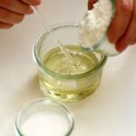 25 g Kokosöl, 2 g Bienenwachs, je 20 g Natron und Speisestärke