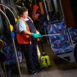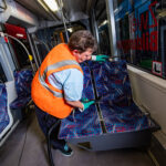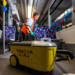 »Die Grundreinigung erfolgt aller sechs bis acht Wochen«, sagt er und erklärt: »Das heißt, die Fahrzeuge werden intensiv nass gereinigt, von der Decke über die Seitenwände bis zum Fußboden. Dann wird gewischt. Wir reinigen die Fenster, sprühen die Polster ein und reinigen sie mit der Bürste.
