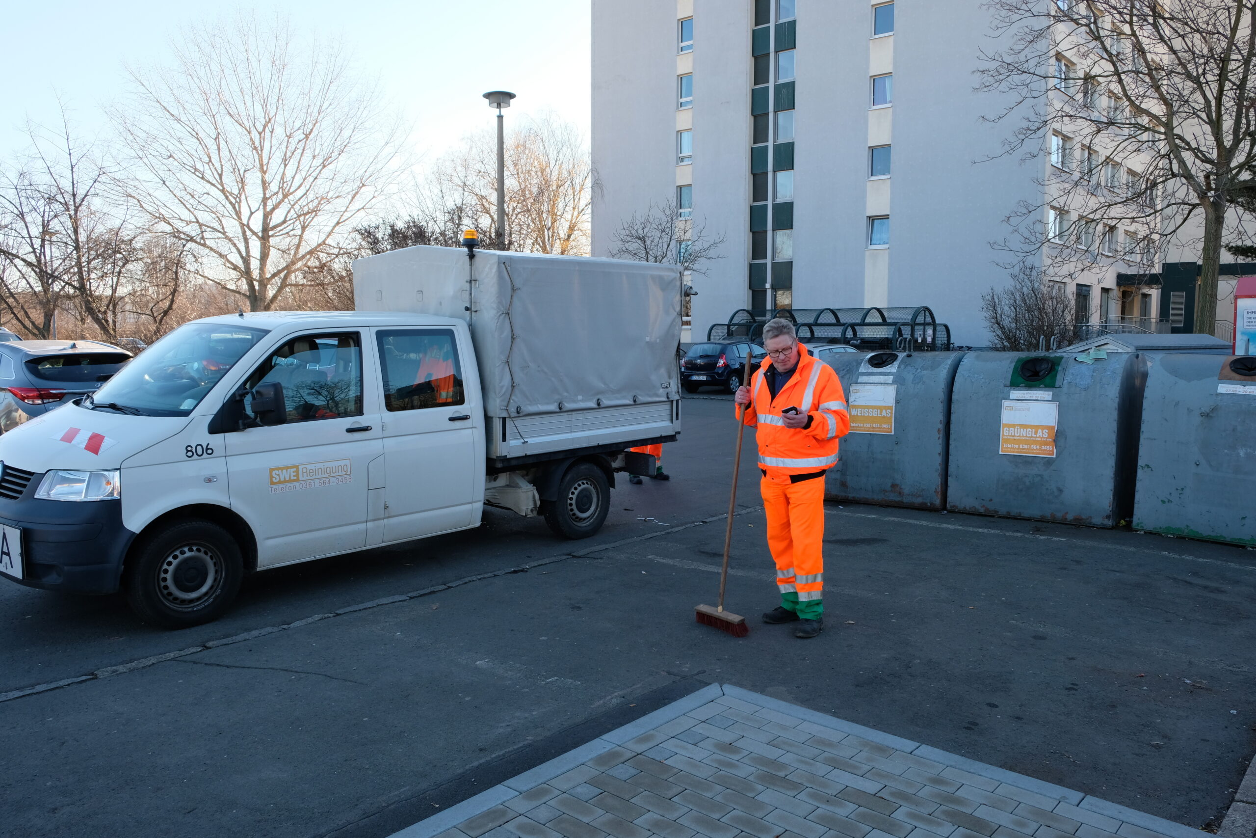 „Unser neues Intranet finde ich richtig klasse“, sagt Hagen Vedder. Er ist Reiniger bei der SWE Stadtwirtschaft, sorgt mit seinen Kollegen bei Wind und Wetter für ein sauberes Erfurt. Hagen: „Bisher war es recht schwierig für uns, auf Informationen im alten Intranet zuzugreifen. Wir haben ja keinen PC zum Arbeiten. Jetzt haben wir alle Infos in der Hosentasche. Das ist schon cool“, sagt er und ergänzt mit einem Zwinkern „auch für mich als alten Hasen“.