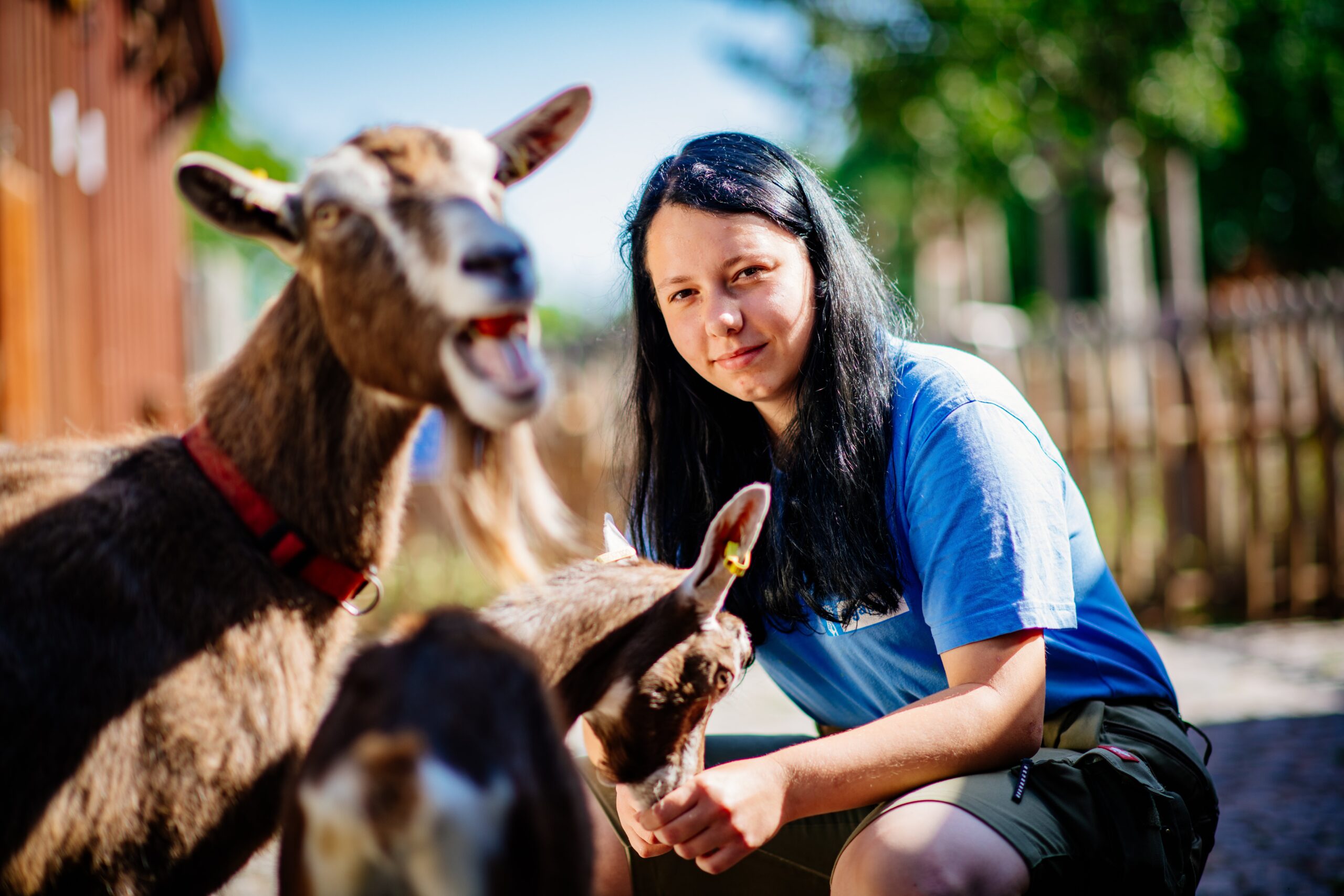 Neben der Arbeit an der Thüringer Bauernstube, gehörte die Pflege des Kinderbauernhofs und seiner Tiere zur Hauptaufgaben der 5 FÖJler. Und auch Gäste des egaparks, die für Streicheleinheiten der beiden Ziegen namens Minze und M20 zu Besuch kamen, mussten genau so gut betreut werden, wie die kleinen Vierbeiner.