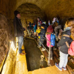 Die schwarzbraunen Bohlen aus Eichenholz sind rutschig, im Stollen ist es frisch. Die Kinder scheint es nicht zu stören. Begeistert laufen sie durch die engen Gänge, bewundern die hübschen, sandsteinfarbenen Quelltöpfe und hin und wieder ist ein „Buh“ zu hören. Immer dann, wenn sie einander erschrecken.