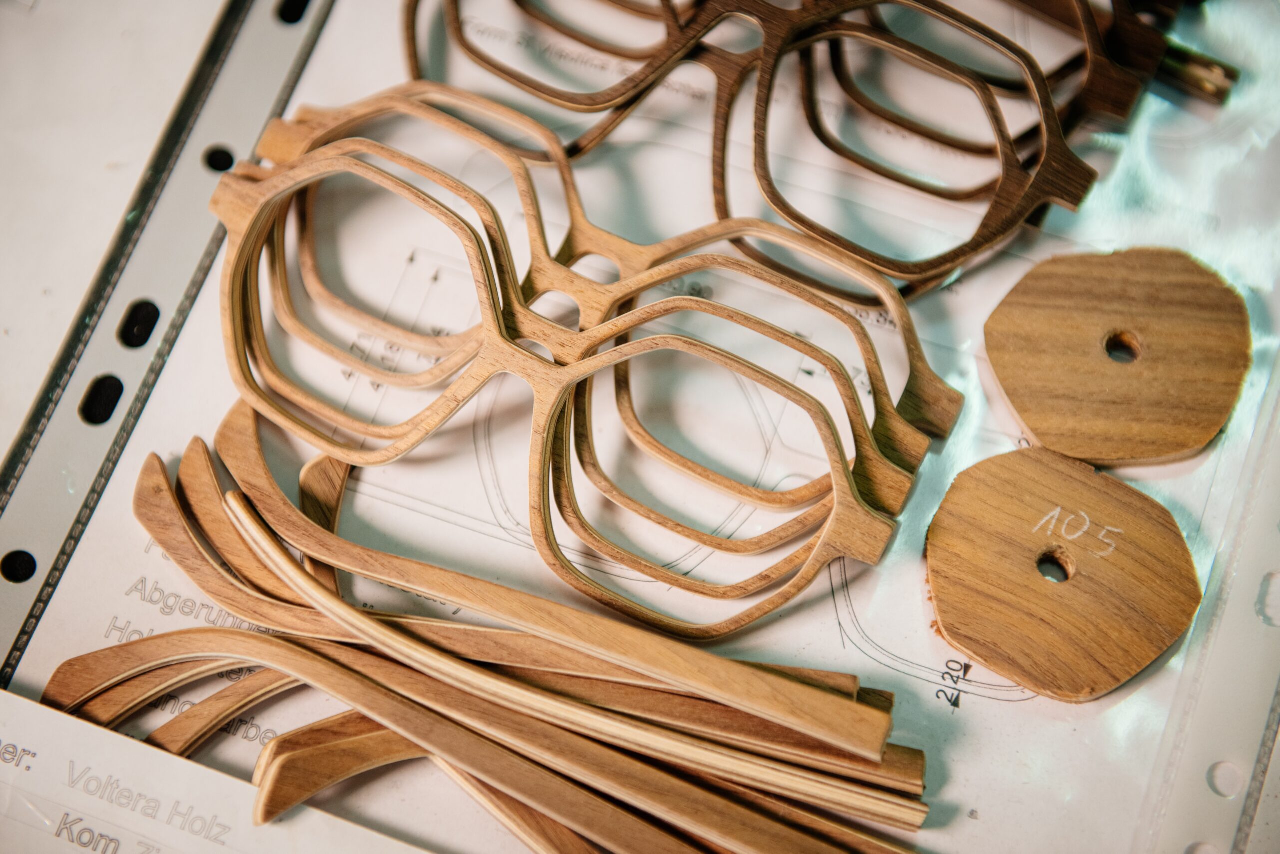 Obwohl Holz und Horn weniger berechenbar als Kunststoff sind, hat kein Mitarbeiter speziell das Handwerk mit Holz erlernt. Vielmehr haben Schippel und sein Team eigene Testreihen und Versuche durchgeführt, um die perfekte Form zu entwerfen, den perfekten Kleber zu finden oder den richtigen Druck beim Pressen der Materialien auszutüfteln. „Viele Punkte der Herstellung orientieren sich bei uns an Punkten, die mich bei anderen Brillen schon immer gestört haben. Ich habe einen sehr hohen Anspruch an die Qualität einer Brille.“, sagt Schippel.