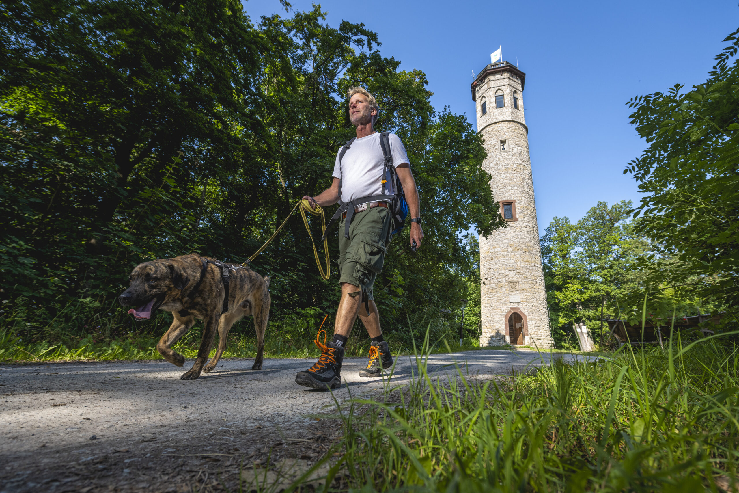 Ob er dabei an das großherzogliche Weimar gedacht hat, an das malerische Bad Berka, den zauberhaften Ort Buchfart oder die malerische Ilm ist nicht überliefert. Eines allerdings ist sicher: Kaum eine Gegend in Thüringen ist so idyllisch, so lieblich und so abwechslungsreich. Wie gut, dass ein Wanderweg rund durch diese hügelige Landschaft führt, die einen hier und da an die Heimat der Hobbits aus dem „Herrn der Ringe“ erinnert. „Thüringer Drei-Türme-Weg“ heißt diese vom Deutschen Wanderverband mehrfach ausgezeichnete Wanderung, die so ziemlich alles zu bieten hat. Vor allem Schönheit der Natur. Mehr als die Hälfte der Strecke führt durch Buchen- und Mischwälder, ein wunderschönes Farbenspiel in den verschiedensten Grüntönen, unterlegt mit den unterschiedlichsten Gerüchen des Waldes. Wer sich Zeit lässt, kann am Wegesrand oder über seinem Kopf immer wieder Dinge entdecken, die die Seele entschleunigen: von feuchtem Moos überwachsene Baumstämme, verschiedenste Pilze, das Singen der Vögel, das Plätschern kleiner Bäche, ein sich ständig änderndes Wechselspiel der Sonnenstrahlen durch das dichte Dach des Waldes.