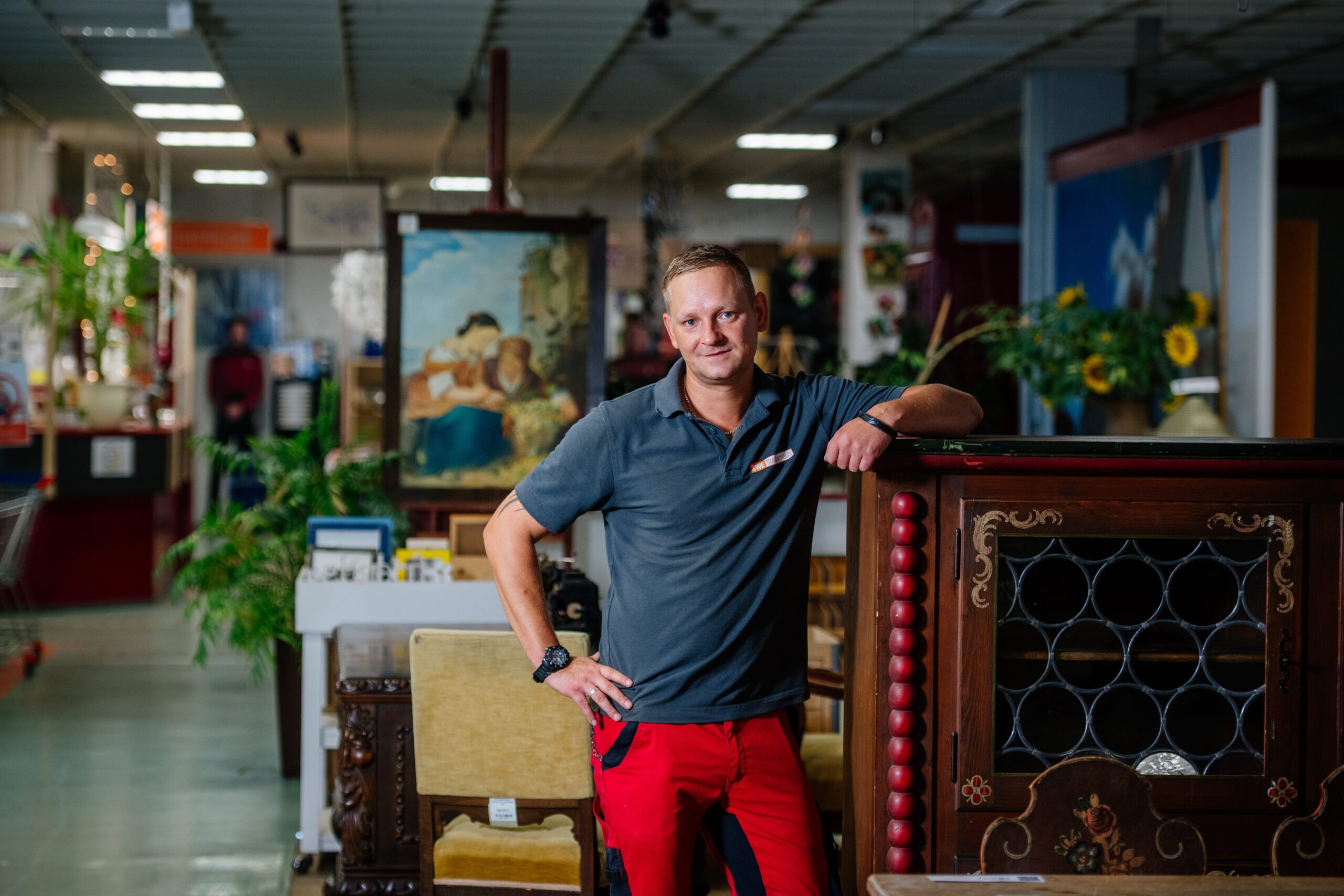 Das Stöberhaus, in dem man auf zwei Etagen Verkaufsfläche vom Sofa bis zum Kaffeekocher alles bekommt, nimmt grundsätzlich alles an, was geliefert wird. „Niemand wird bei uns abgewiesen. Wir nehmen erst einmal alles entgegen, was uns gebracht wird. Dann schauen wir, ob etwas stark verschmutzt oder beschädigt ist. Wenn der Wert des Teils aber die Kosten für die Reparatur oder Reinigung nicht deckt, kommt es auch mal vor, dass wir etwas entsorgen müssen“, so Nico. Der dreifache Vater ist seit zwei Jahren Teil des 17-köpfigen Stöberhaus-Teams. Zu seinen Aufgaben gehören die Möbelmontage und –demontage, Reparaturen und das Bereitstellen der Möbel im Ausstellungsraum. „Durch den Krieg in der Ukraine hatten wir in den letzten Monaten viel Arbeit – im positiven Sinn natürlich. Es wurde unglaublich viel gespendet. Die Leute haben viel Kleinzeug gebracht, aber auch ein paar Möbel waren dabei. So viel Hilfsbereitschaft zu sehen war schön. Der Laden wurde regelrecht leer gekauft“.