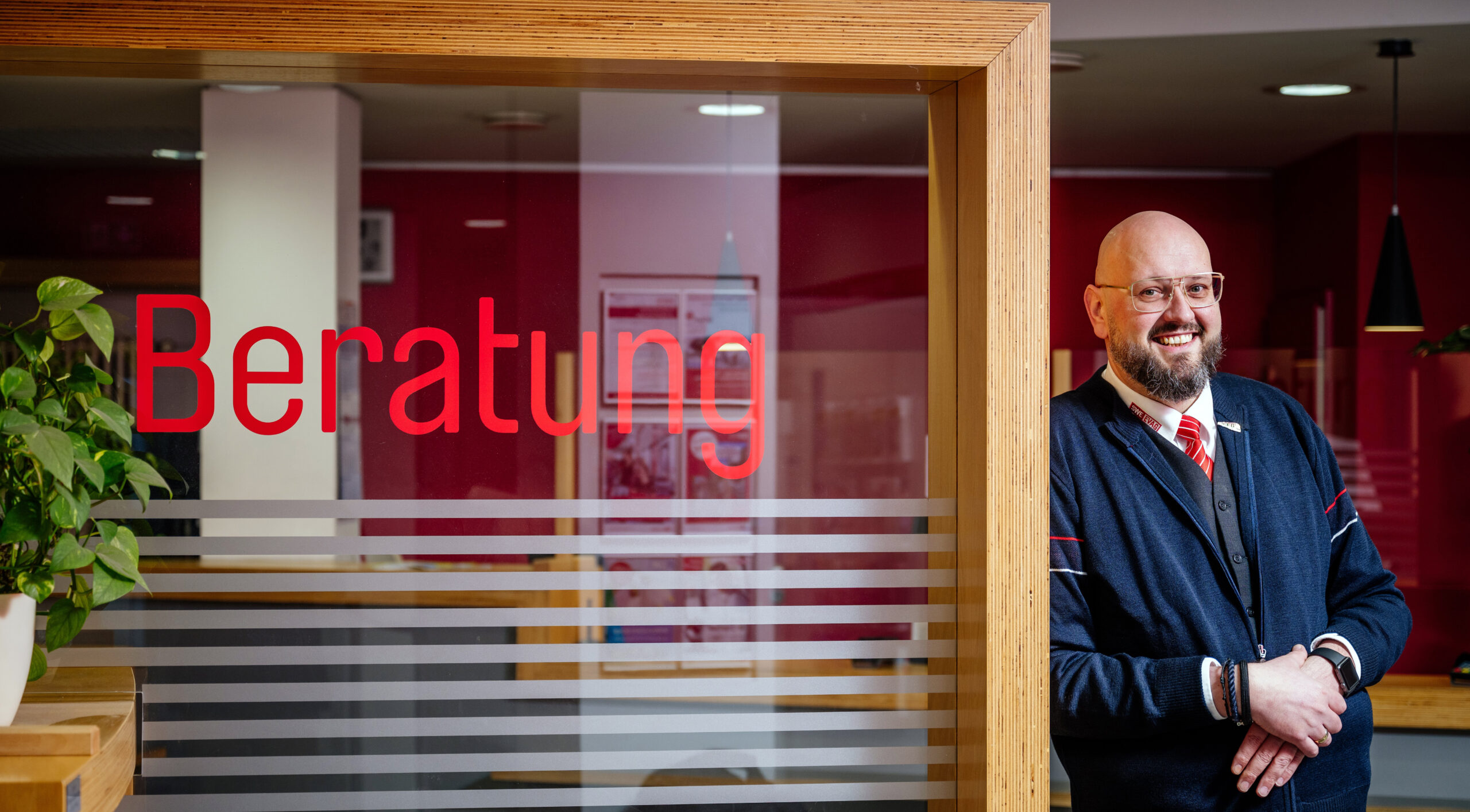 Das Beraten und Verkaufen liegt Mathias Birnbaum im Blut. Als gelernter Einzelhandelskaufmann hat er sein Handwerk von Pike auf gelernt. Nach Stationen in einem Lebensmittelgeschäft und als Schichtleiter bei einer Zeitung, suchte er nach Veränderung. „Ich habe irgendwann den Kontakt zu Kunden vermisst. Ich rede einfach viel und helfe gerne, da kam das Jobangebot bei der EVAG gerade recht“, sagt er und lacht. Bevor es aber an den Schalter im EVAG „Mobizentrum“ ging, gab‘s zum Start eine Grundbesohlung rund um Abonnements, Fahrpläne, Tarifbestimmungen und Umgang mit Kunden. Eine wichtige und lehrreiche Zeit, auch wenn ihm die Freundlichkeit in die Wiege gelegt wurde, wie er selbst sagt.