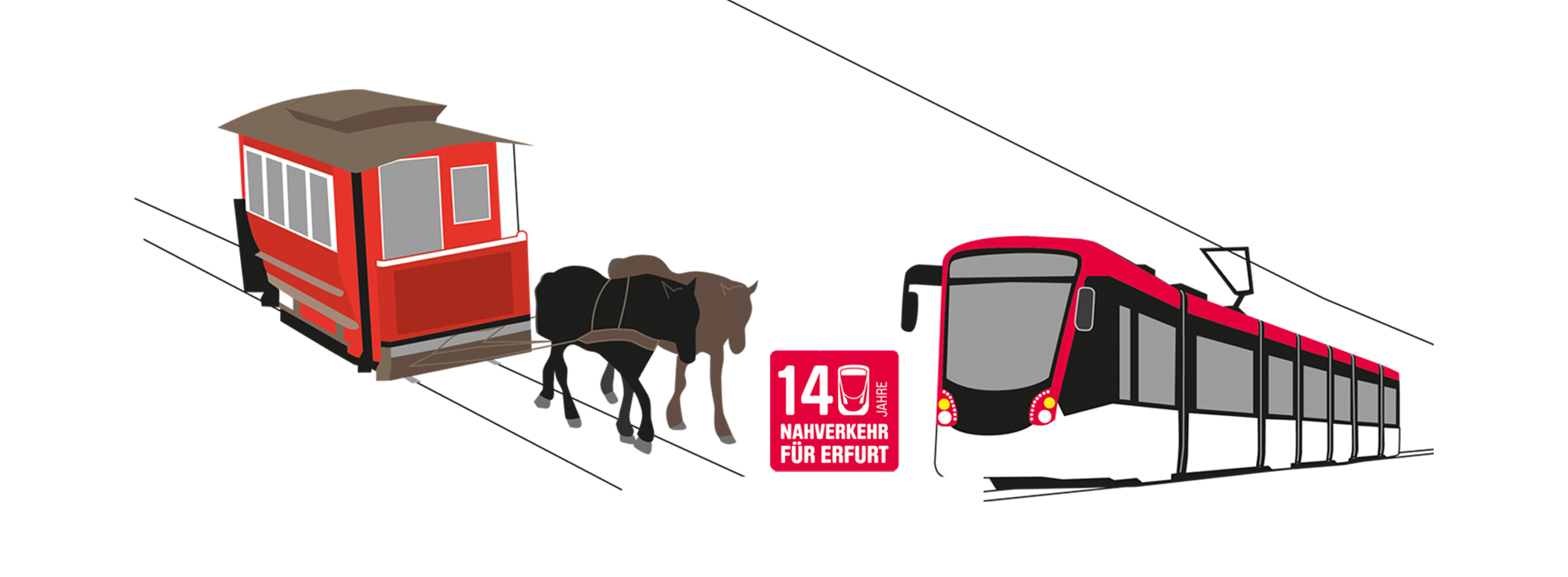 1883: Nach nur dreimonatiger Bauzeit nimmt die „Erfurter Straßen-Eisenbahn“ am 13. Mai mit Pferd und Wagen den Betrieb zwischen der Gemeinde Ilversgehoven (Papiermühlenweg) und dem Gasthaus „Flora“ (Steigerstraße) sowie zwischen Hirschgarten und Schießhaus (Thüringenhalle) auf. Im Herbst folgt eine dritte Linie zwischen Andreastor (Moritzwallstraße) und Hauptbahnhof. Die Linien werden mit Farben gekennzeichnet. Das Streckennetz beträgt knapp neun Kilometer. Erbauer und Betreiber ist die Firma Marcks & Balke aus Berlin. Sie überträgt die Konzession jedoch schon im August 1883 an ein Konsortium privater Aktionäre, die zeitgleich mit der Übertragung die „Erfurter Straßenbahn AG“ gründen.