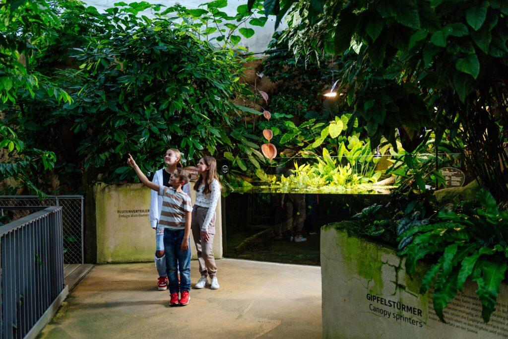 Kinder staunen über Sonnenflüchter, Schattenmacher oder winzige Tiere mit ganz besonderen Überlebensstrategien. Wer genau hinschaut, entdeckt Blattschneideameisen, bunte Schmetterlinge oder Fledermäuse, die nachts den Urwald lebendig machen.