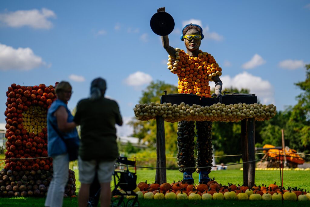 Deutschland, Thüringen, Thueringen, SWE, Stadtwerke, egapark, Freizeitpark, Pflanzen, Blumen, Herbst, Kürbis, Kürbiskunst, Kürbisausstellung „Kürbissymphonie – Von Klassik bis Pop“ vom 6.9. – 31.10.25 im egapark, Klassik, Pop, Kürbisfiguren, Kulisse