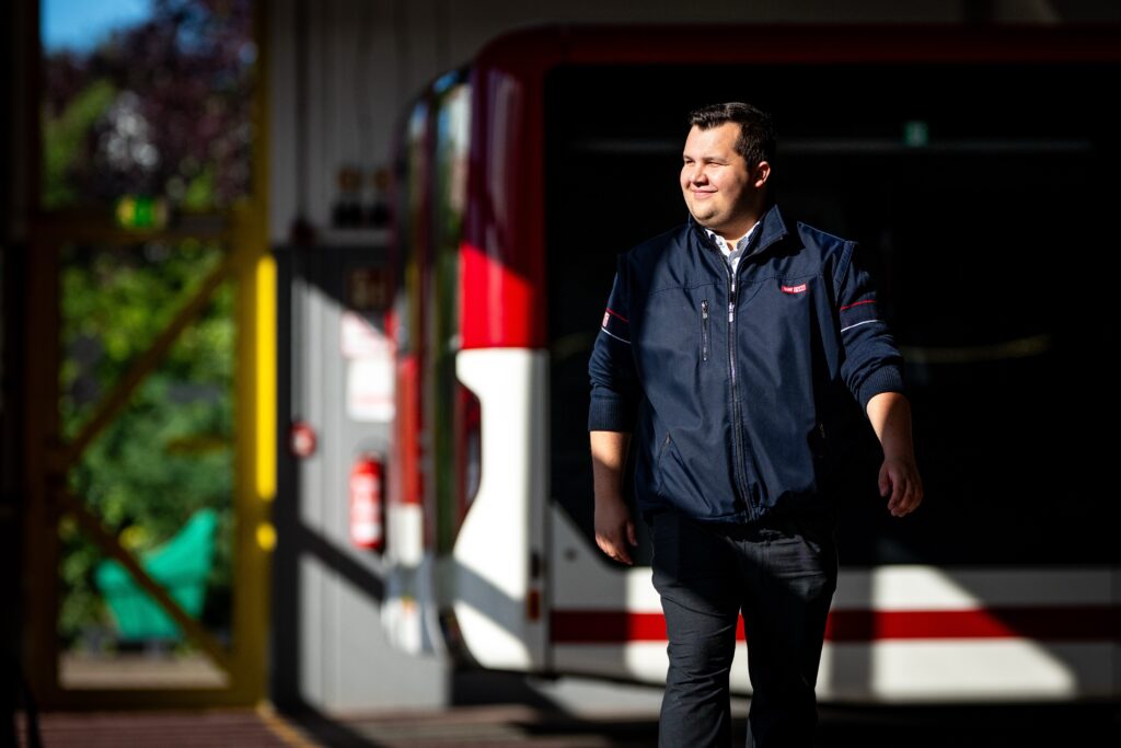 Nach seinem erfolgreichen Abschluss Anfang 2025 fährt Luca heute fast ausschließlich Bus. Er arbeitet in einem geteilten Dienstmodell und schätzt an diesem, dass es ihm eine verlässliche Tagesstruktur ermöglicht. Die Entscheidung gegen die Straßenbahn fiel bewusst – sie passt aktuell nicht so gut zu seinem Alltag. Mindestens alle drei Monate fährt er aber auch mal Bahn. Das ist notwendig, damit sein Führerschein für die Straßenbahn nicht verfällt.