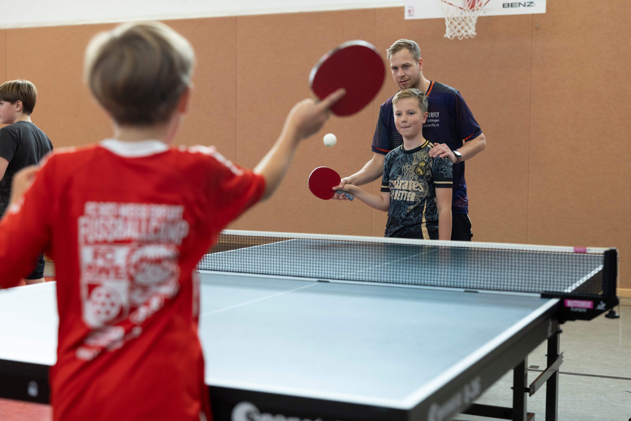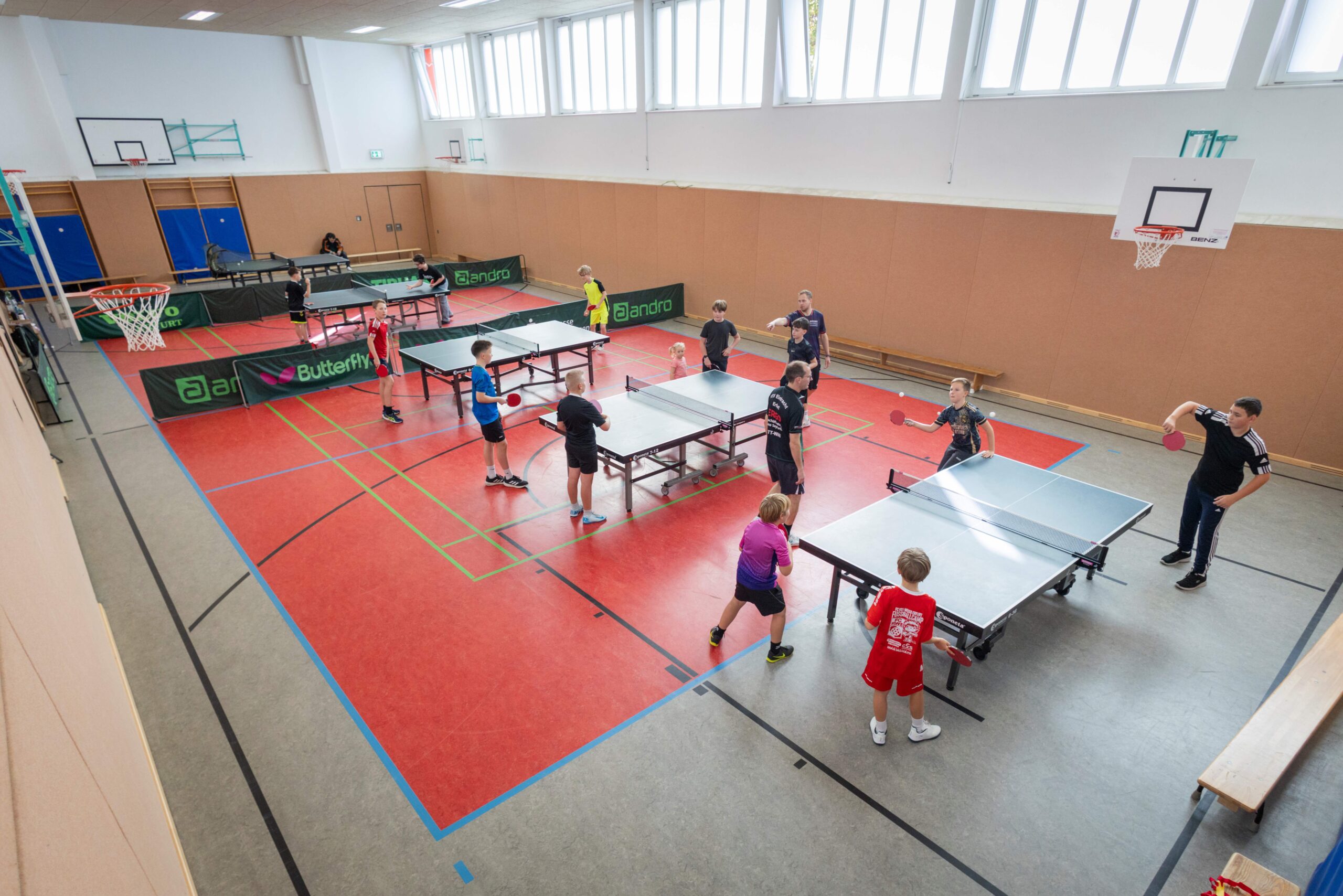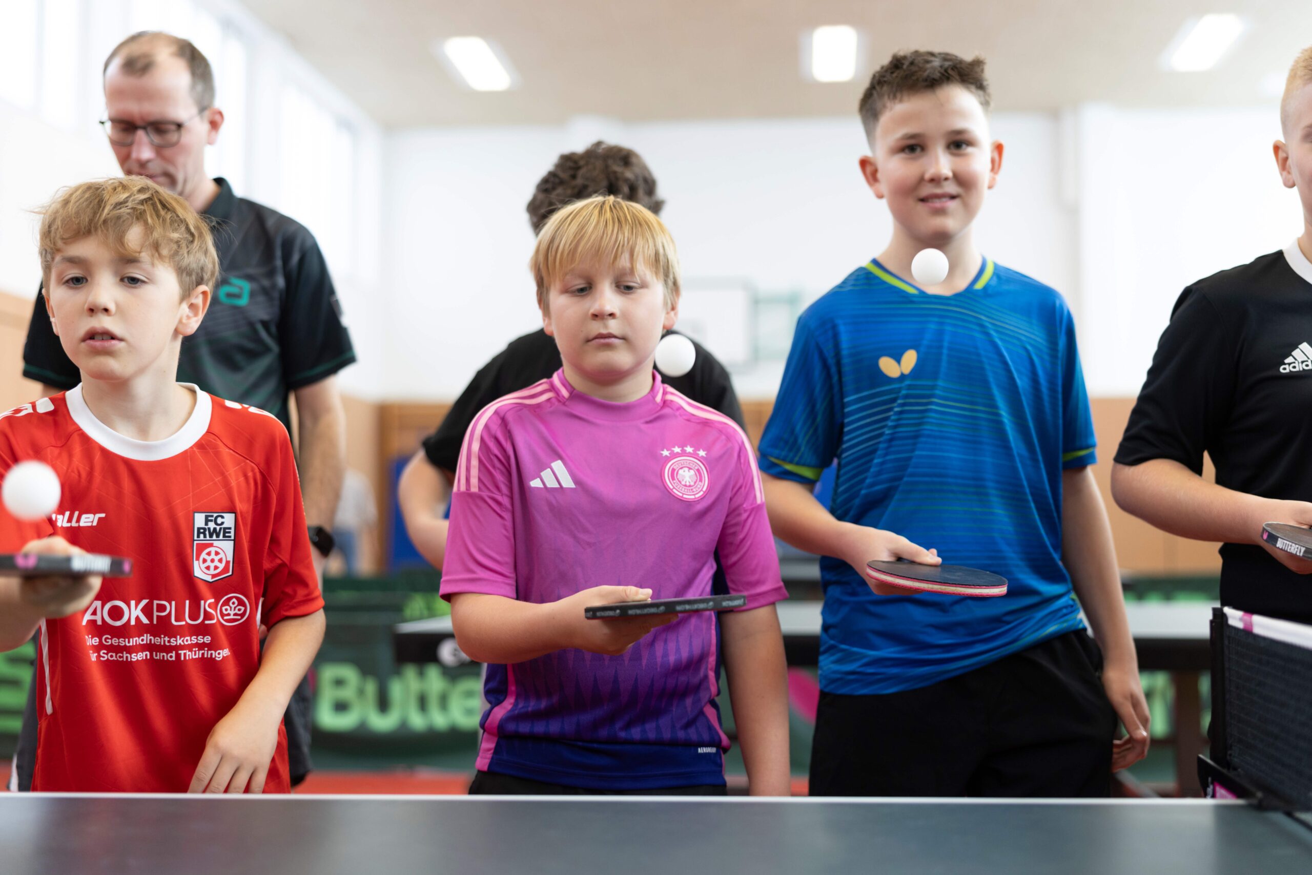 16 Tischtennisspieler sind ganz neu im Bereich der Jugend gestartet und trainieren seit August 2025. „Schon nach kurzer Zeit war die Nachfrage für das neue Jugendteam so groß, dass viele erst einmal auf der Warteliste landeten“, erzählt Daniel Willer (Bild oben rechts), neben Marius Marth einer von zwei neuen Jugendtrainern bei der Eintracht. „Unser Verein wurde in der jetzigen Form als TTV Eintracht Erfurt 1994 gegründet. Der Tischtennissport wird in der Turnhalle der Grundschule 22 in der Riethstraße aber schon über 40 Jahre betrieben. Mit aktuell fünf Herren- sowie einer Jugendmannschaft zählen wir zu den größeren Tischtennisvereinen Erfurts“, so Stephan Münkner, Vereinsvorsitzender. Nachdem die Jugendmannschaft vor ca. drei Jahren aus dem Verein abgewandert war und es an Trainern fehlte, ist der Start des neuen Nachwuchsteams ein großer Erfolg. Beide Jugendtrainer haben selbst als Jugendliche bei der Eintracht das Einmaleins des Tischtennisspieles gelernt. Daniel Willer ist nach mehreren Jahren Pause wieder in den TTV zurückgekehrt. Beide Söhne sind im neu gegründeten Team und so ist Trainingszeit auch Familienzeit. Die Sonderaktion zum Weltkindertag auf der Erfurt-Crowd kam zum richtigen Zeitpunkt. Daniel Willers Frau Sabine hatte davon gelesen. Zu der Chance auf eine ordentliche Spendensumme gab es für die ersten fünf Starter einen Trikotsatz für den Verein. Genau das fehlte dem Tischtennisnachwuchs noch, denn die Jugendabteilung ist ganz neu entstanden und erhielt erst zwei Wochen vor Ende der Sommerferien die Zusage für Hallenzeiten.