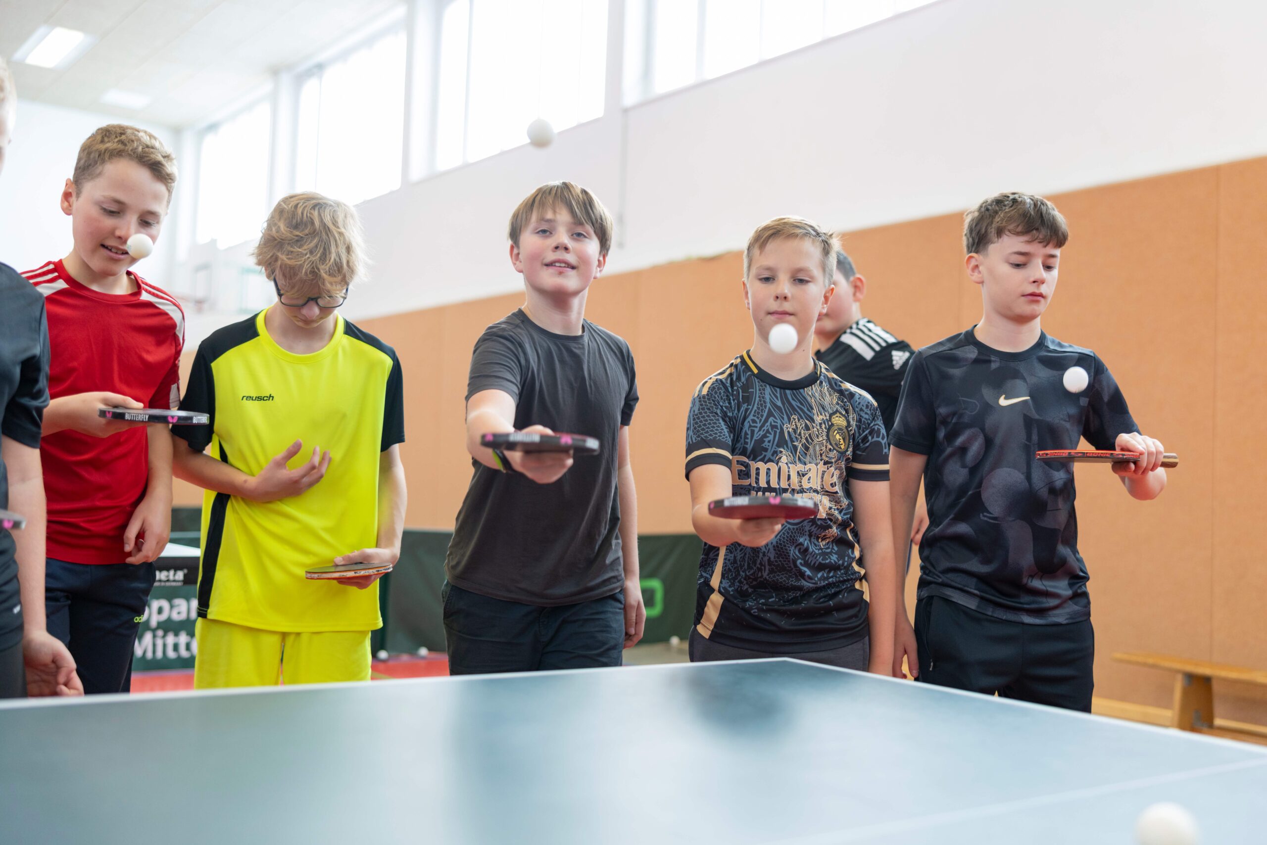 „Trainer und Kinder starteten mit viel Begeisterung, doch schon nach den ersten Trainingseinheiten stellte sich heraus, dass noch Tischtennisbälle, Springseile und Trikots für das einheitliche Auftreten und den Teamzusammenhalt angeschafft werden müssen“,