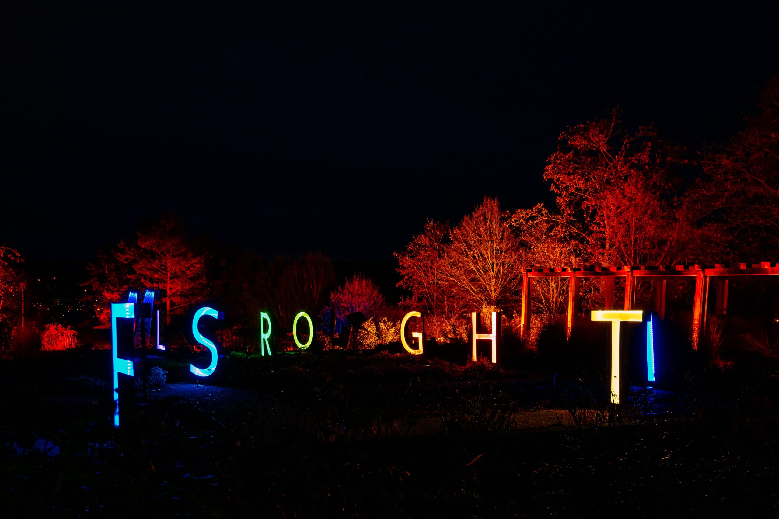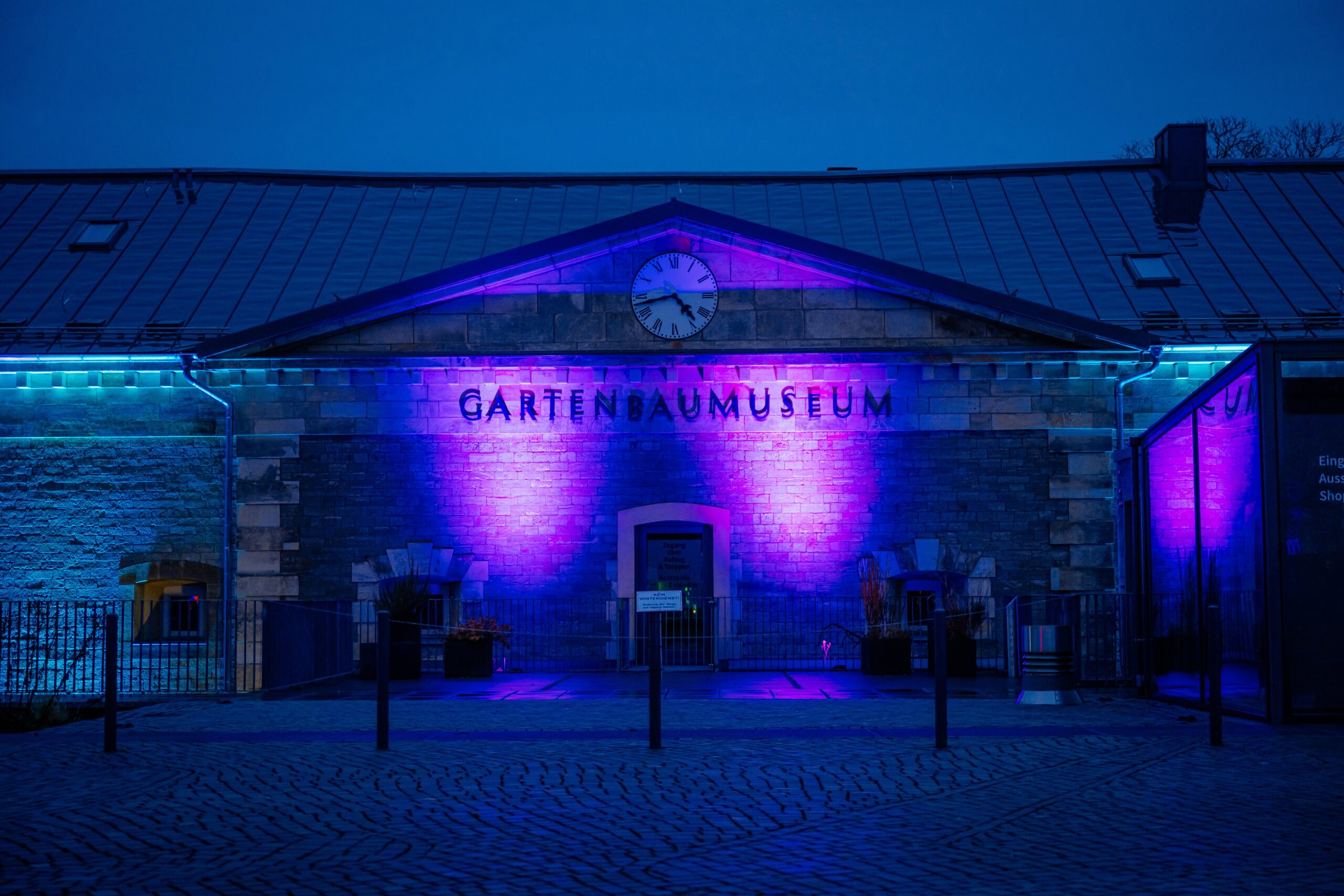 Schon am Haupteingang entfalten Farbtöne und glitzernde Installationen ihre Wirkung. Die Dunkelheit wird zur perfekten Bühne für die vielfältigen Lichtobjekte, die den gesamten Rundweg begleiten. Von dort führt der Weg entlang der großen Wiese, vorbei am Danakil und weiter bis zum Rosengarten und dem Deutschen Gartenbaumuseum.
