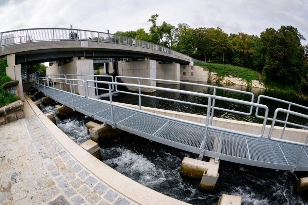 Auch an die Fischwelt wurde beim Umbau gedacht. Eine große Fischaufstiegsanlage – im Volksmund „Fischtreppe“ genannt – macht das Wehr für Fische und andere Wasserlebewesen passierbar. Laut Genehmigung müssen dauerhaft rund 500 Liter Wasser pro Sekunde durch diese Anlage fließen. Doch bei Niedrigwasser kann das kritisch werden. „In diesem Sommer kamen zeitweise nur etwa 750 Liter pro Sekunde in Erfurt an“, berichtet Hartmann. „Da blieben für die Innenstadt nur 250 Liter – eindeutig zu wenig.“