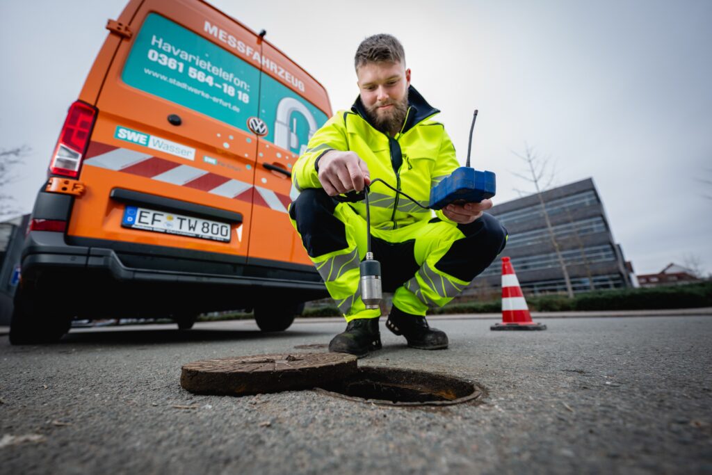 Mögliche Strategien, um die Wasserversorgung für Erfurt und das Umland auch künftig sicher und nachhaltig zu gestalten, daran arbeitet Erfurts Wasserversorger, die ThüWa ThüringenWasser GmbH. Dazu gehört auch die Minimierung von Schleichverlusten im Versorgungsnetz. Water Loss Management (WLM) ist der Schlüsselbegriff dafür. Bisher wurde mit aufwendigen regelmäßigen Messungen im Netz auf Basis von Korrelationsmessverfahren, einer Wechselbeziehung verschiedener Messwerte, nach möglichen Verlusten gesucht. Künftig sollen vorhandene Technologien und Daten in einem System zusammengeführt werden und mit Hilfe von Rechenmodellen und Künstlicher Intelligenz die potenzielle Schadstelle ermittelt werden. Das Verfahren existiert nicht nur am Schreibtisch, sondern befindet sich bereits in der Testphase. „Das Wasser, was wir aus unseren Grundwasservorkommen gewinnen oder aus der Ohratalsperre von der Thüringer Fernwasserversorgung geliefert bekommen, wollen wir möglichst verlustarm nutzen. So schützen wir die natürlichen Wasserressourcen am besten“, weiß Susanne Kaiser. Mit knapp 10 Prozent Wasserverlusten kann die ThüWa auf eine geringe Prozentzahl im Kreis der Wasserversorger verweisen. In Summe sind das aber dennoch knapp 2,9 Mio. Kubikmeter Wasser, die aufgrund von unsichtbaren Schäden am unterirdisch verlegten Wasserleitungsnetz pro Jahr im Boden versickern. „Das Wasser ist nicht verloren und gelangt wieder in den Wasserkreislauf, doch aus wirtschaftlicher Sicht und aus Gründen der nachhaltigen Nutzung wollen wir diese Verluste weiter reduzieren“, erklärt die ThüWa-Chefin das Pilotprojekt.