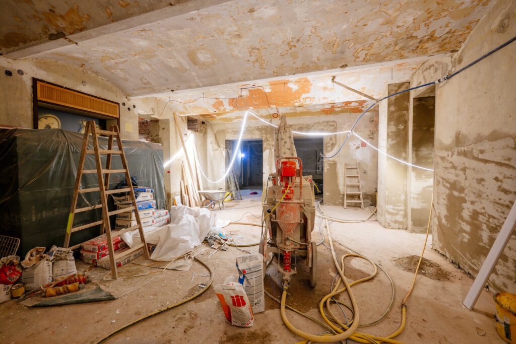 Geht man durch das Haus, staubt‘s mal von rechts, von links, von oben, von unten. Eine einzige große Baustelle. Schmidt: „Wir sind im Plan“.