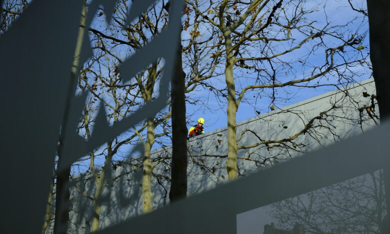 Industriekletterer putzten den Erfurter Busbahnhof